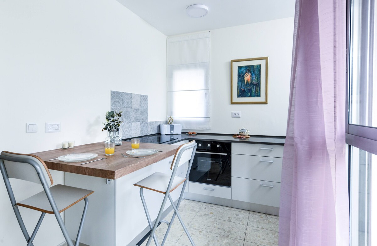 Step into a clean and bright space that offers a coveted feature—a lovely private balcony, perfectly complementing the 55 square meter apartment. This sought-after amenity provides a tranquil outdoor retreat in the heart of Tel Aviv. Whether you wish to enjoy a morning cup of coffee or unwind with a book in the afternoon breeze, the balcony offers a peaceful sanctuary.Immerse yourself in the rich and ful design that creates a truly unique atmosphere within the apartment. Every detail has been carefully considered, from the carefully chosen furnishings to the artistic touches that add a touch of personality to the space. The vibrant palette adds a sense of energy and liveliness, creating an environment that is both invigorating and inviting.