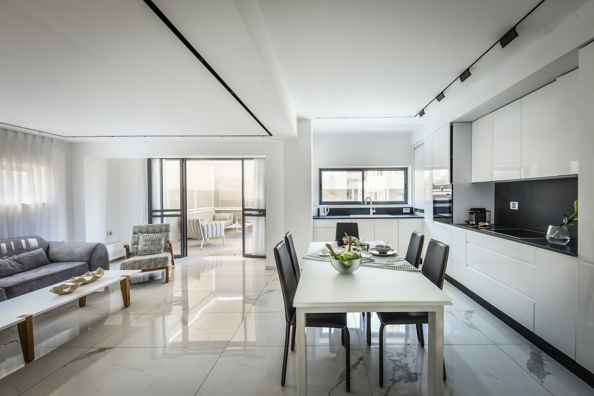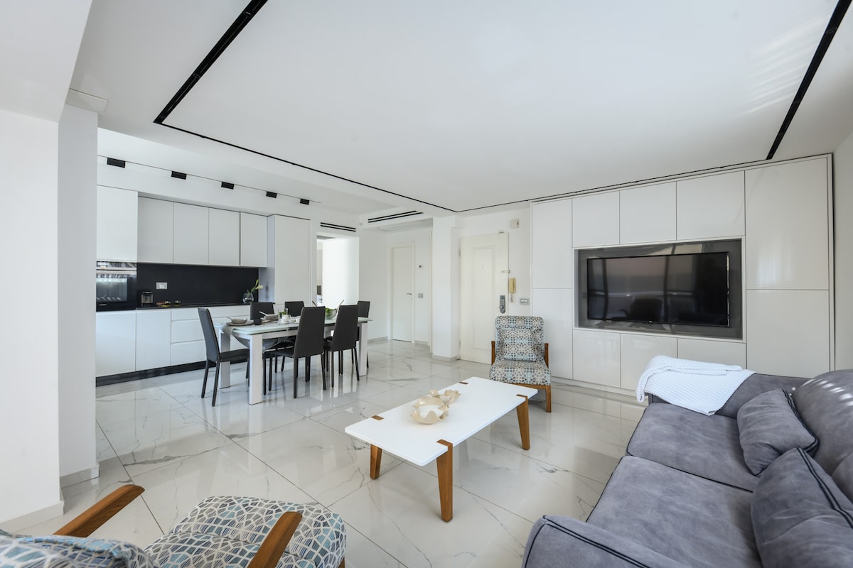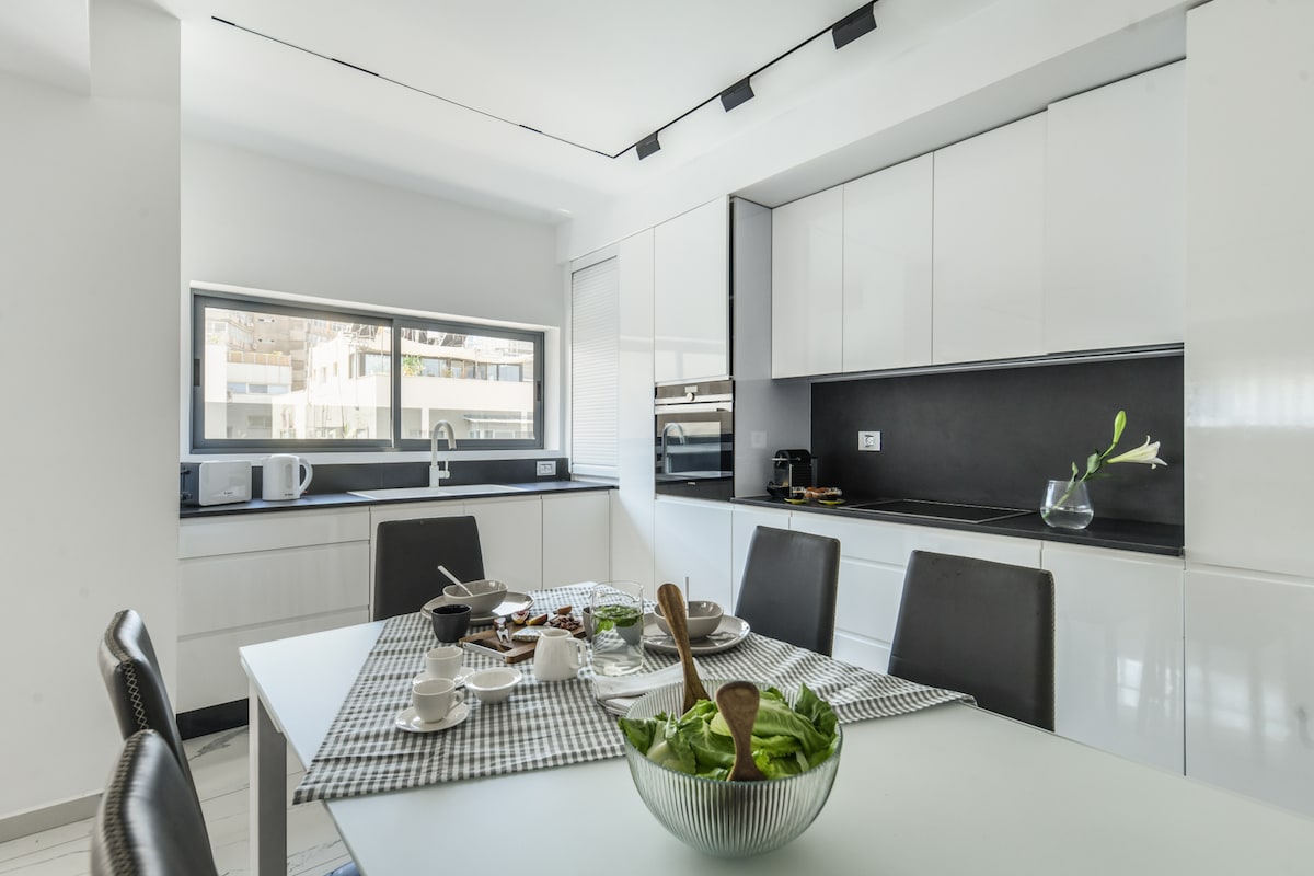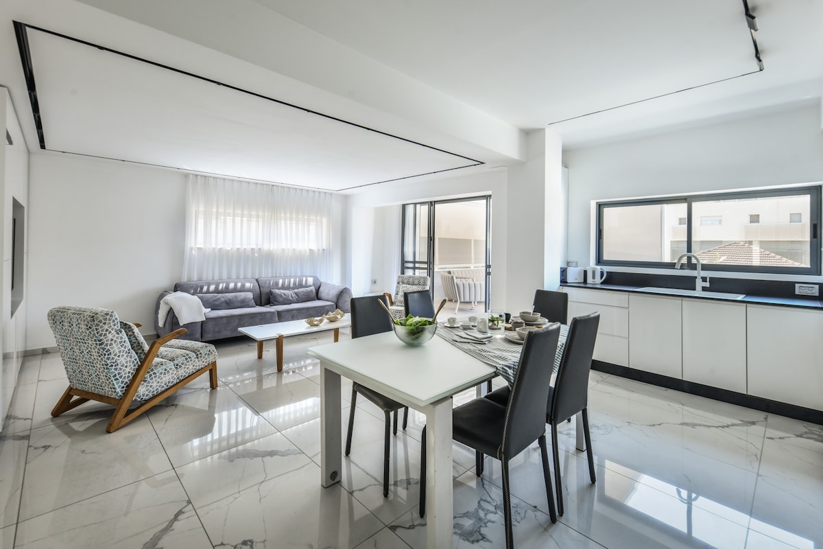 This apartment features two spacious bedrooms, each equipped with a comfortable Queen-sized bed to accommodate up to four guests. Ideal for families or friends traveling together.The highlight of our rental is the large living room that connects to your private and spacious balcony. Enjoy a cup of coffee in the morning or a refreshing afternoon tea while taking in the best city view Tel Aviv has to offer.