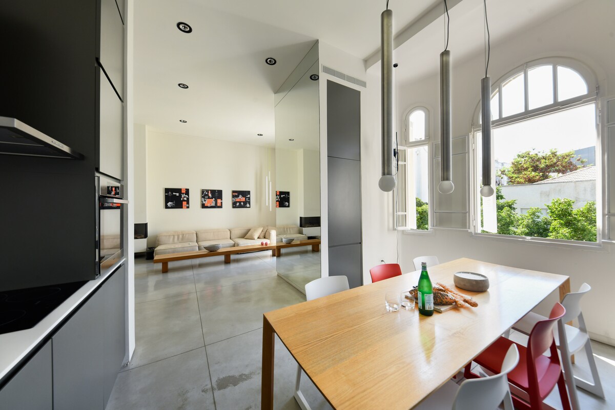 Step inside this spacious and bright vacation rental apartment, featuring modern design elements that can comfortably accommodate up to 6 people. Whether you're looking to relax after a day at the nearby beaches or explore the bustling city center just a few minutes' walk away, this apartment offers an excellent location to experience the best of Tel Aviv.