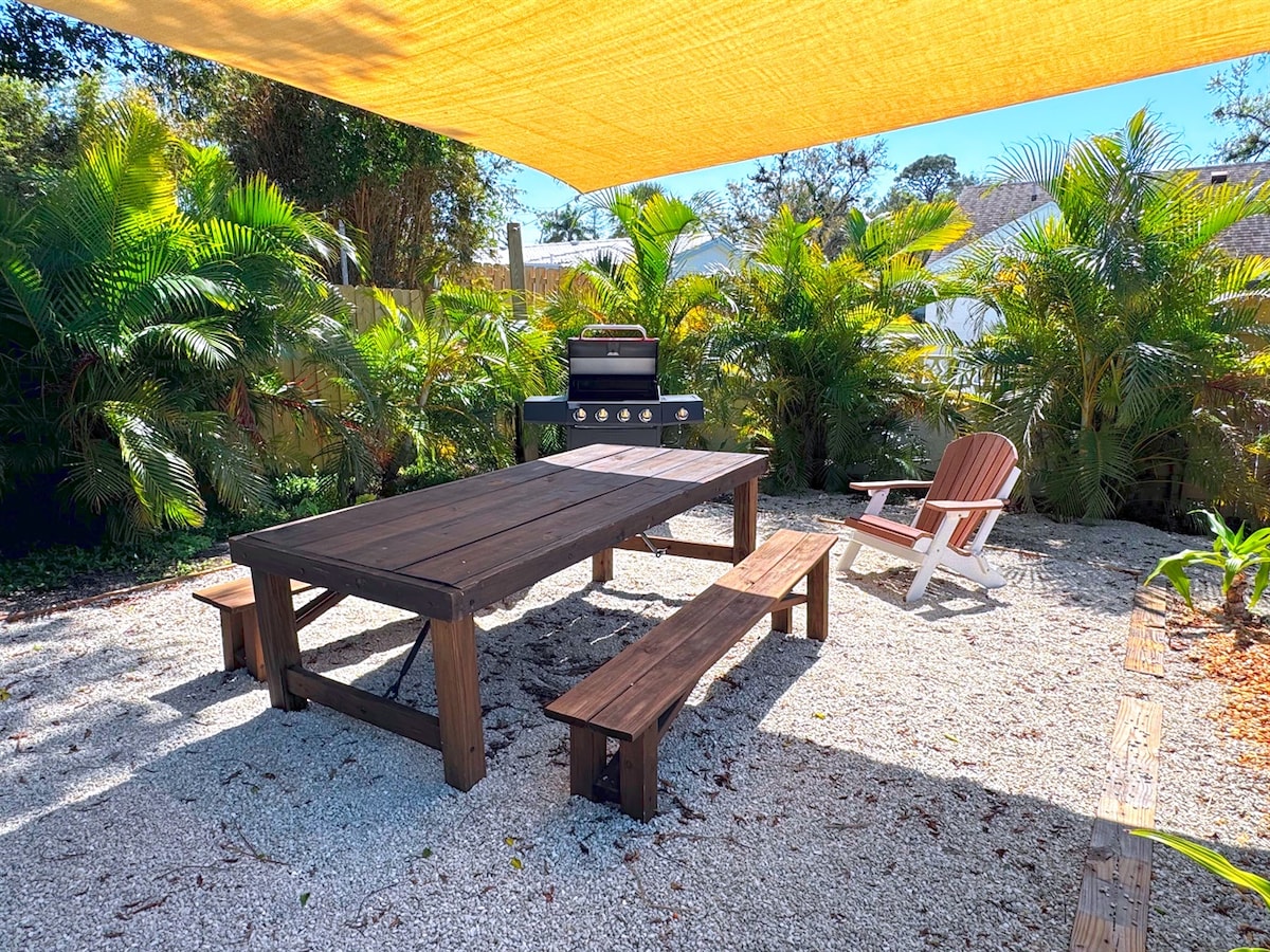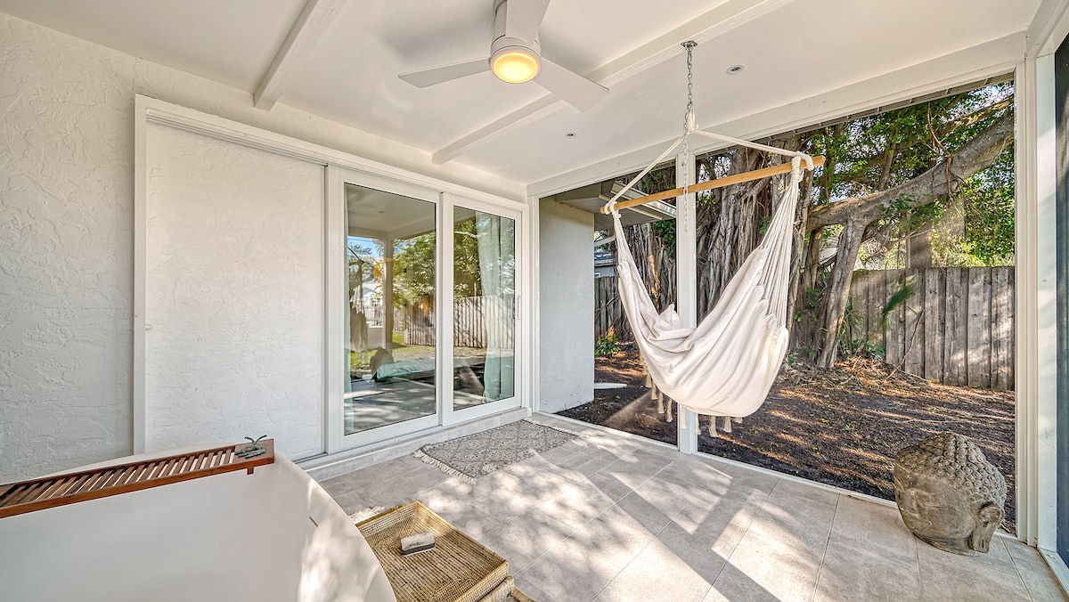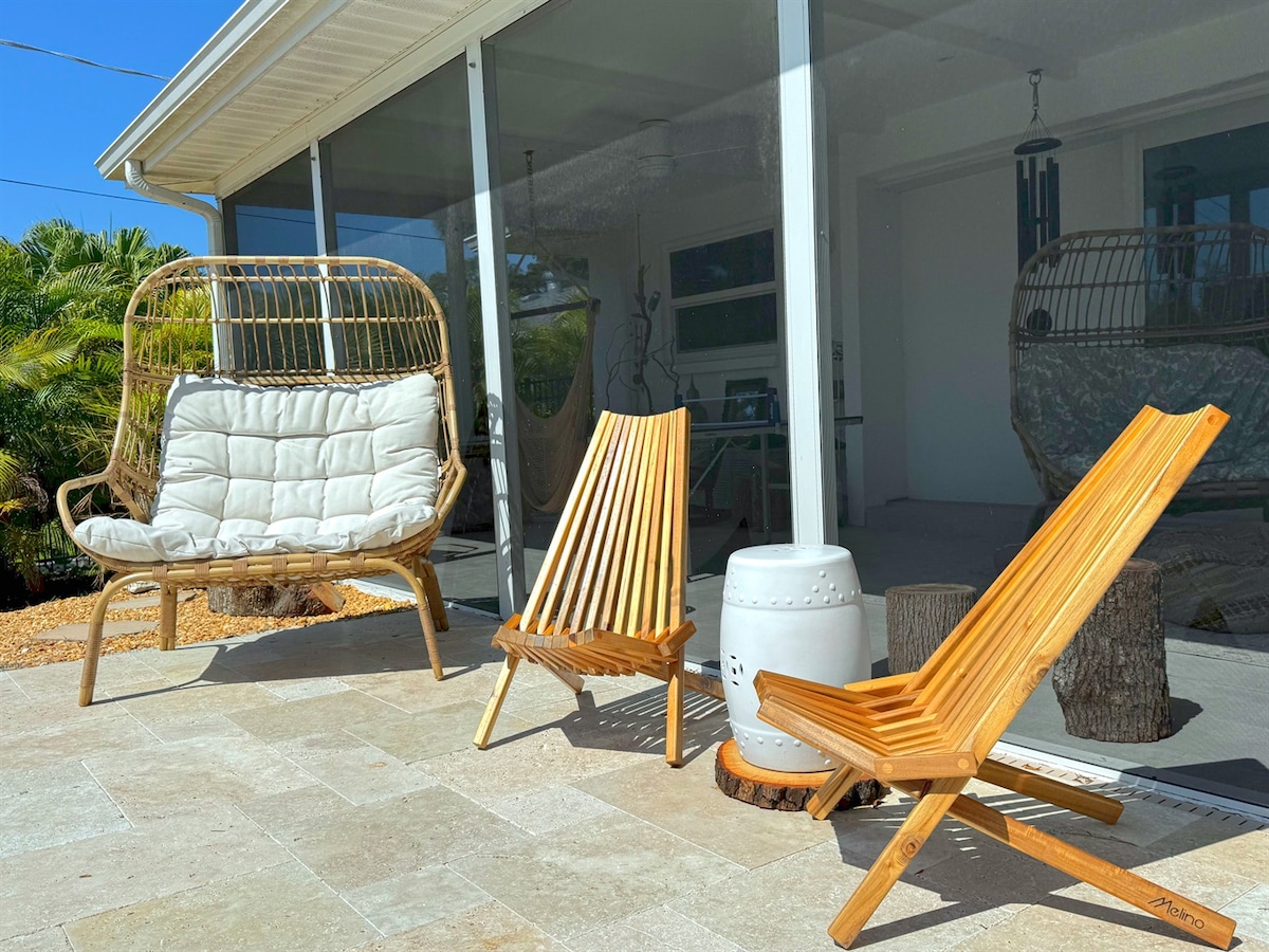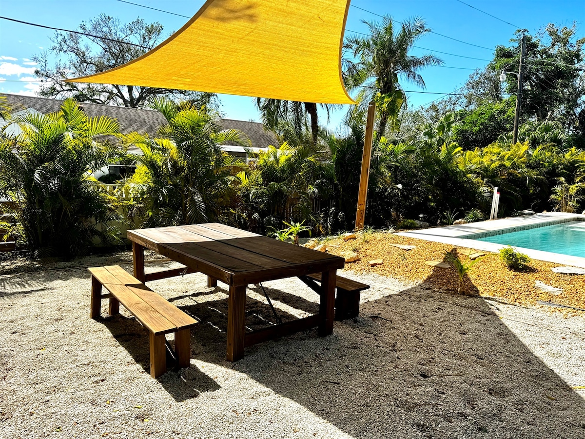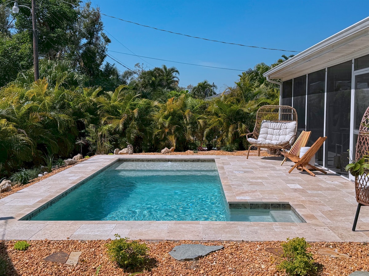 Serenity Retreat is a well-located 3-bedroom, 2-bath vacation home in Sarasota with a private pool that can be heated, situated in the desirable Indian Beach / Sapphire Shores neighborhood.