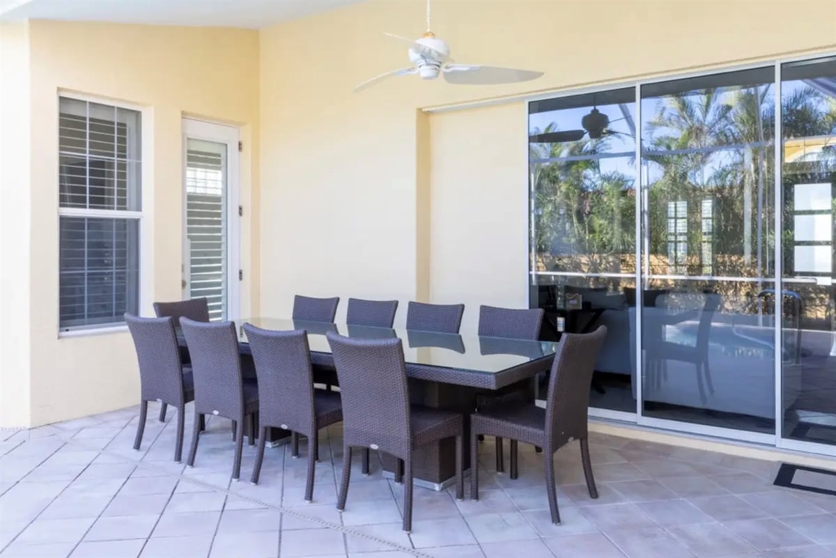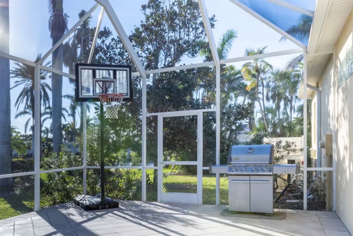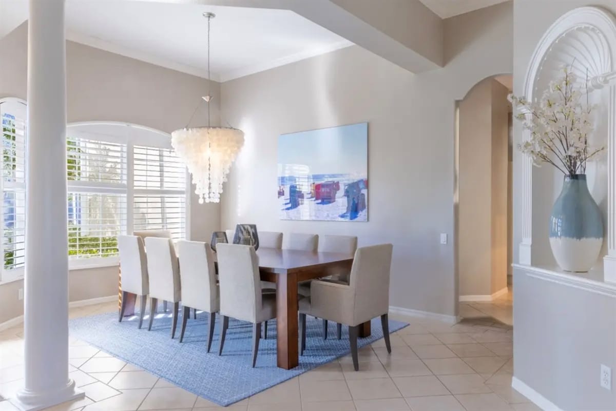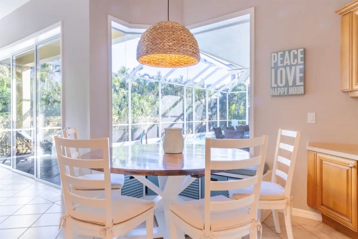The three bedrooms are comfortably furnished with quality bedding and offer excellent privacy, each supported by well-appointed bathrooms. An additional half bath provides extra convenience. Outdoors, the private pool area offers a peaceful place to relax and soak up Florida’s sunshine, with optional pool heating available. Overall, the space is designed to feel refined, comfortable, and perfectly suited to an upscale Bird Key stay.