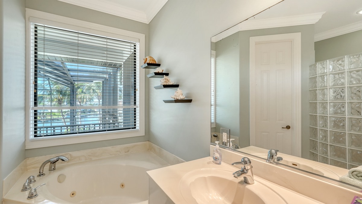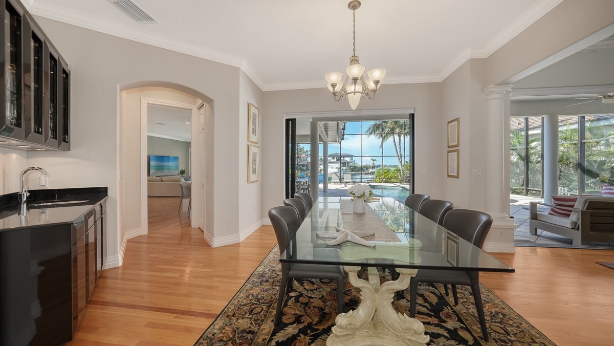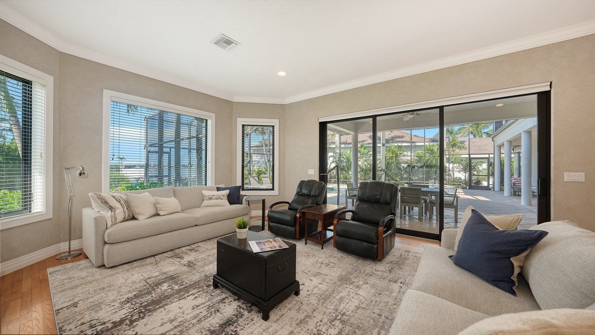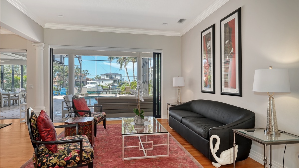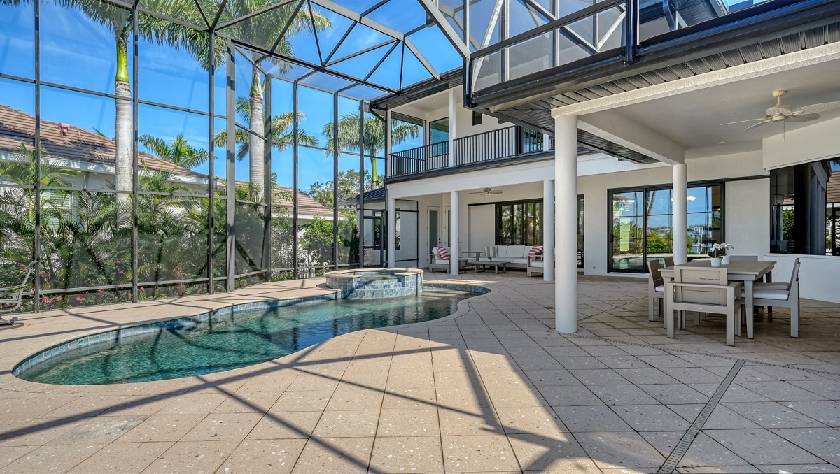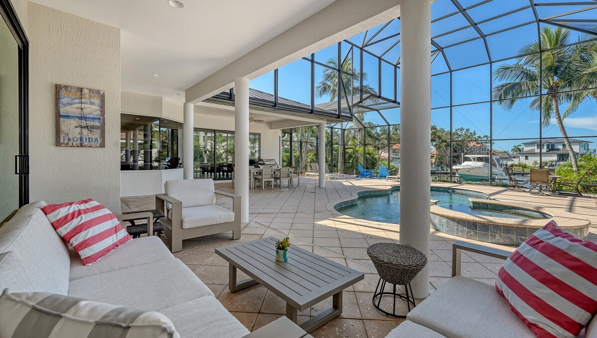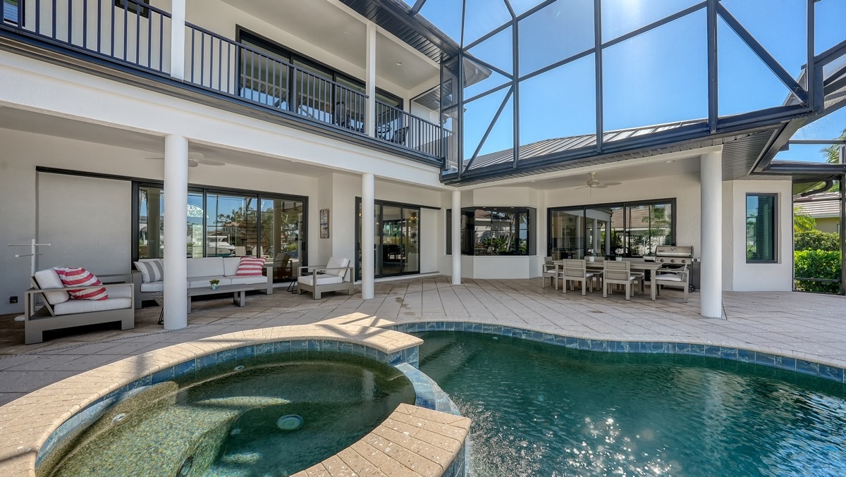 Waterfront lifestyle with a spacious lanai with paver pool deck and a heated pool & spa are all part of this exclusive home.