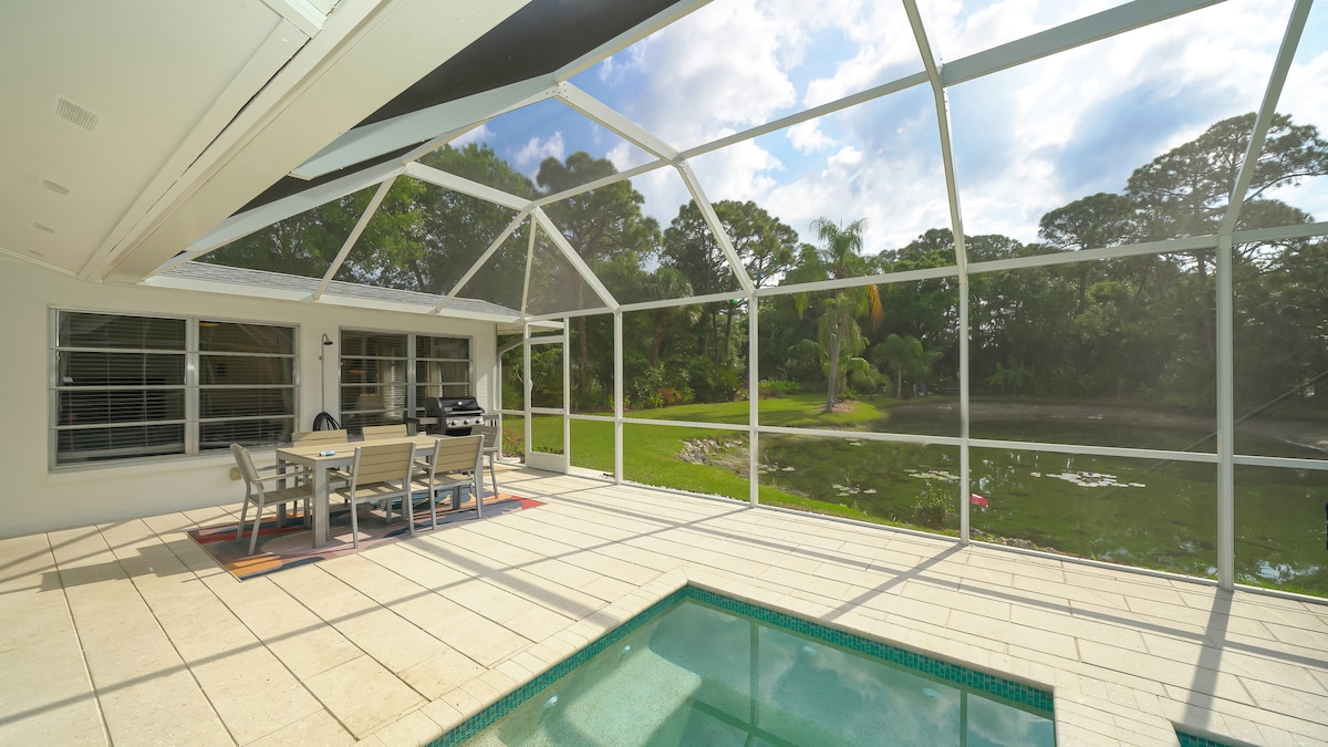 Take a refreshing swim in the electrically heated saltwater pool, soak in the Jacuzzi, or simply unwind in the spacious outdoor area surrounded by Florida’s natural beauty.Inside, the home features a well-equipped kitchen with brand-new stainless steel appliances, including a refrigerator, microwave, and dishwasher — making meal prep a breeze. Enjoy bright, open living spaces and all the essentials you need for a worry-free stay.