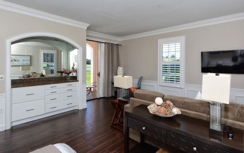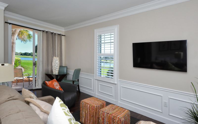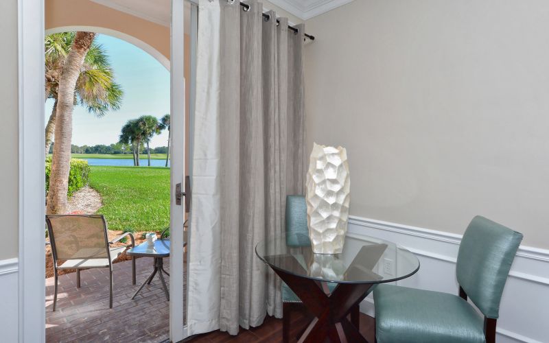 Completely furnished studio with a wonderful view of the adjoining lake and the golf course behind it. On 680 sqft living space a living-, eating and sleeping area awaits you. The bathroom has 2 separate sinks, a walk-in shower, a toilet and a washing machine and dryer. The kitchenette includes dishwasher and refrigerator as well as granite countertops, two burner stove, microwave and Keurig coffeemaker. The Smart TV provides entertainment for everyone. The queen bed has a TempurPedic mattress and the sleeping sofa offers space for additional 2 people.Guest access