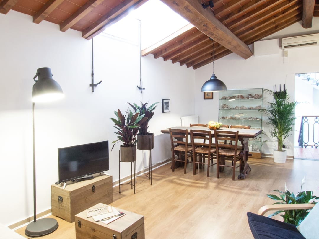 Very spacious and clean accommodation. Located in the center near Ponte Vecchio. Beautiful volumes, we were 9 and were able to share our meals, the rooms are spacious and the different levels allow everyone to have their living space. Francesca was very welcoming and very attentive.