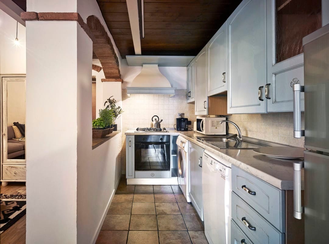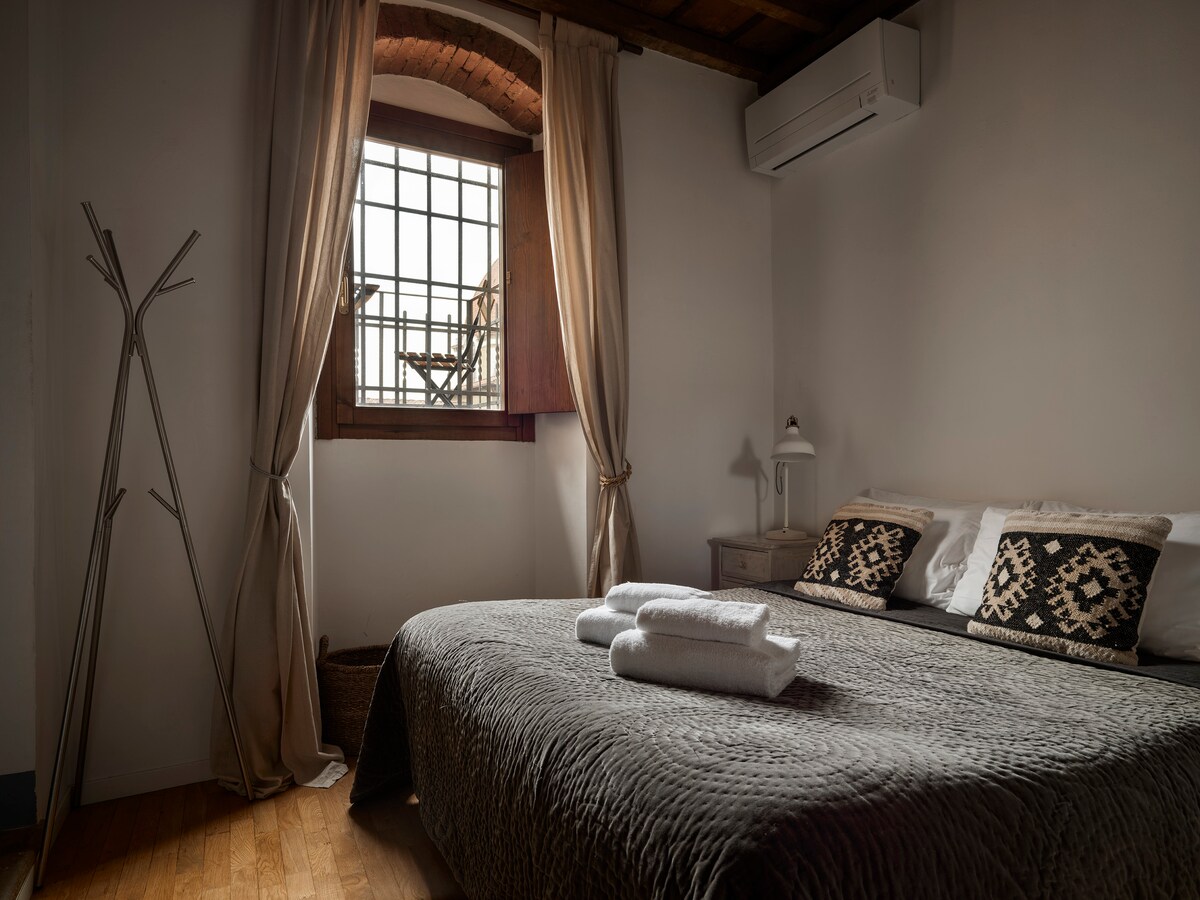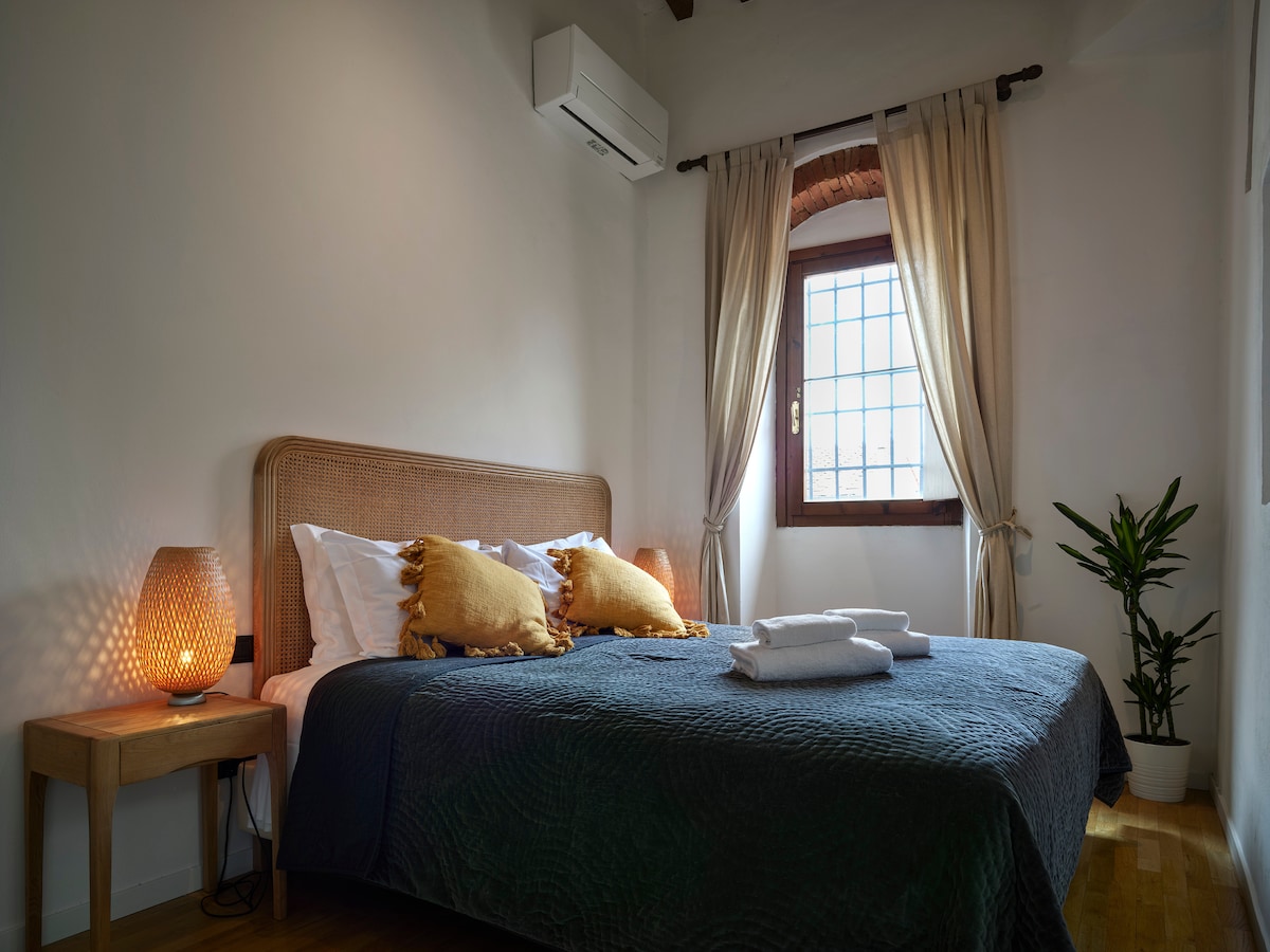 You can breathe an authentic taste of traditional Florentine house, given by wooden ceilings, brick arches, and typical architectural details. The living area is spacious, with an articulated space, high ceiling, and open kitchen.