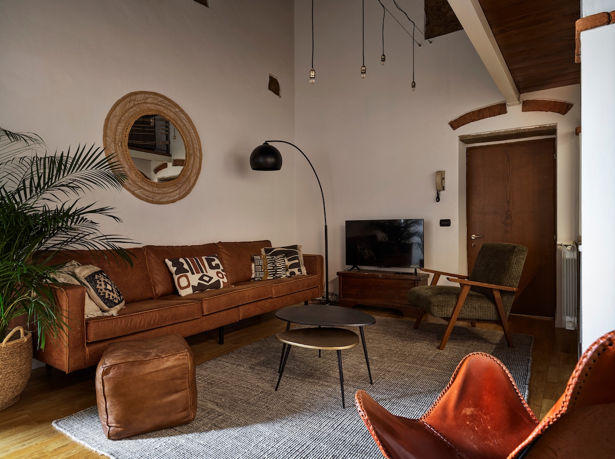 The apartment is stylishly furnished, in a skilful mix of original Tuscan furniture and contemporary bohemian furnishings.