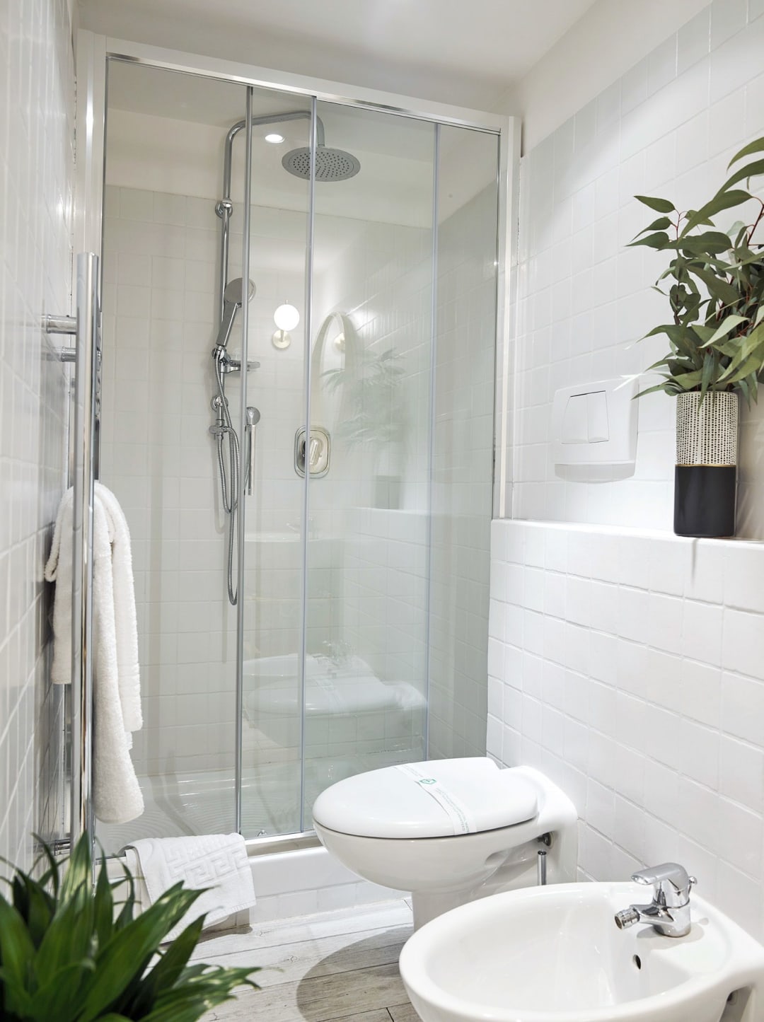 Bagno con doccia; termoarredo, luci allo specchio, asciugacapelli.