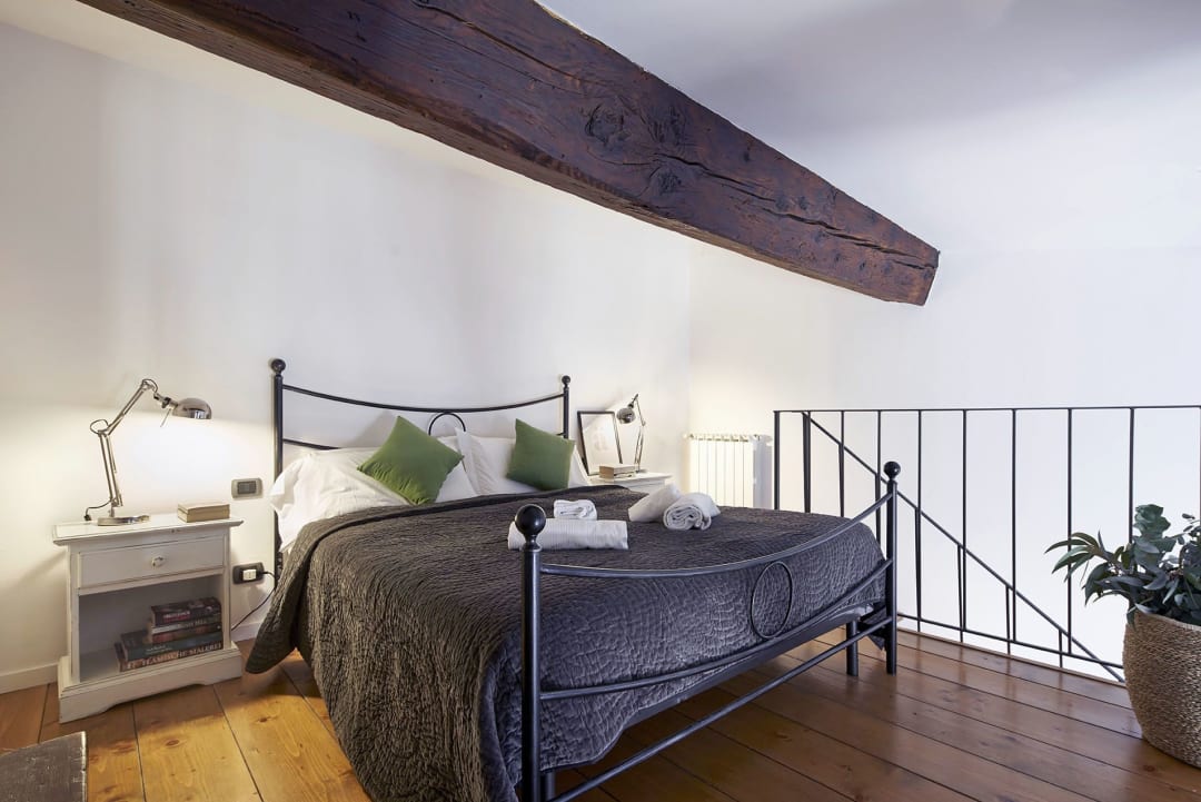 Furnished with style, with a loft structure, with two large rooms of which the first houses the living room and the main bedroom in the loft, the second houses the kitchen and bedroom with two single beds in the loft, this is the perfect apartment for a family or a group that loves modern open spaces, but also appreciates details with a distinctive flavor.The furniture has been completely renovated with a skilful mix of bohemian-style furniture and accessories.