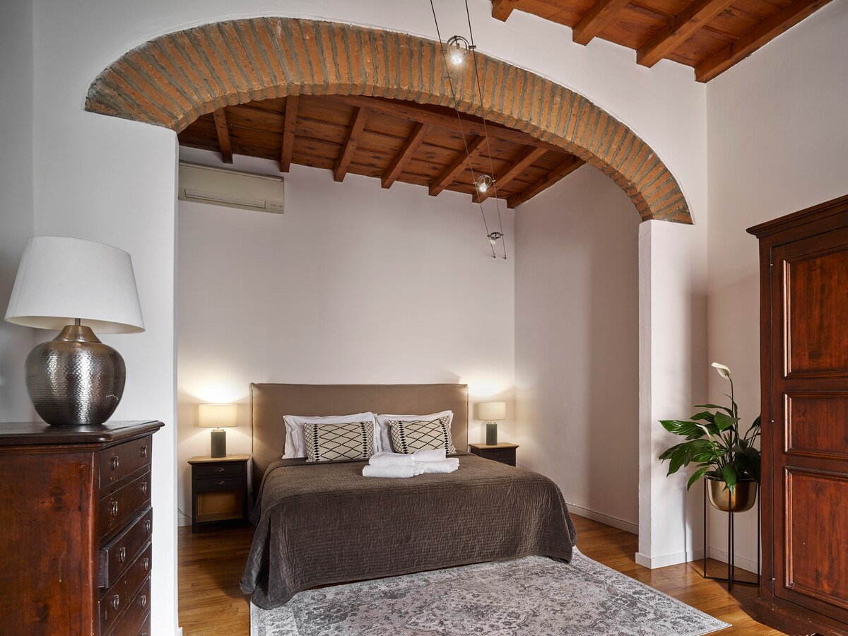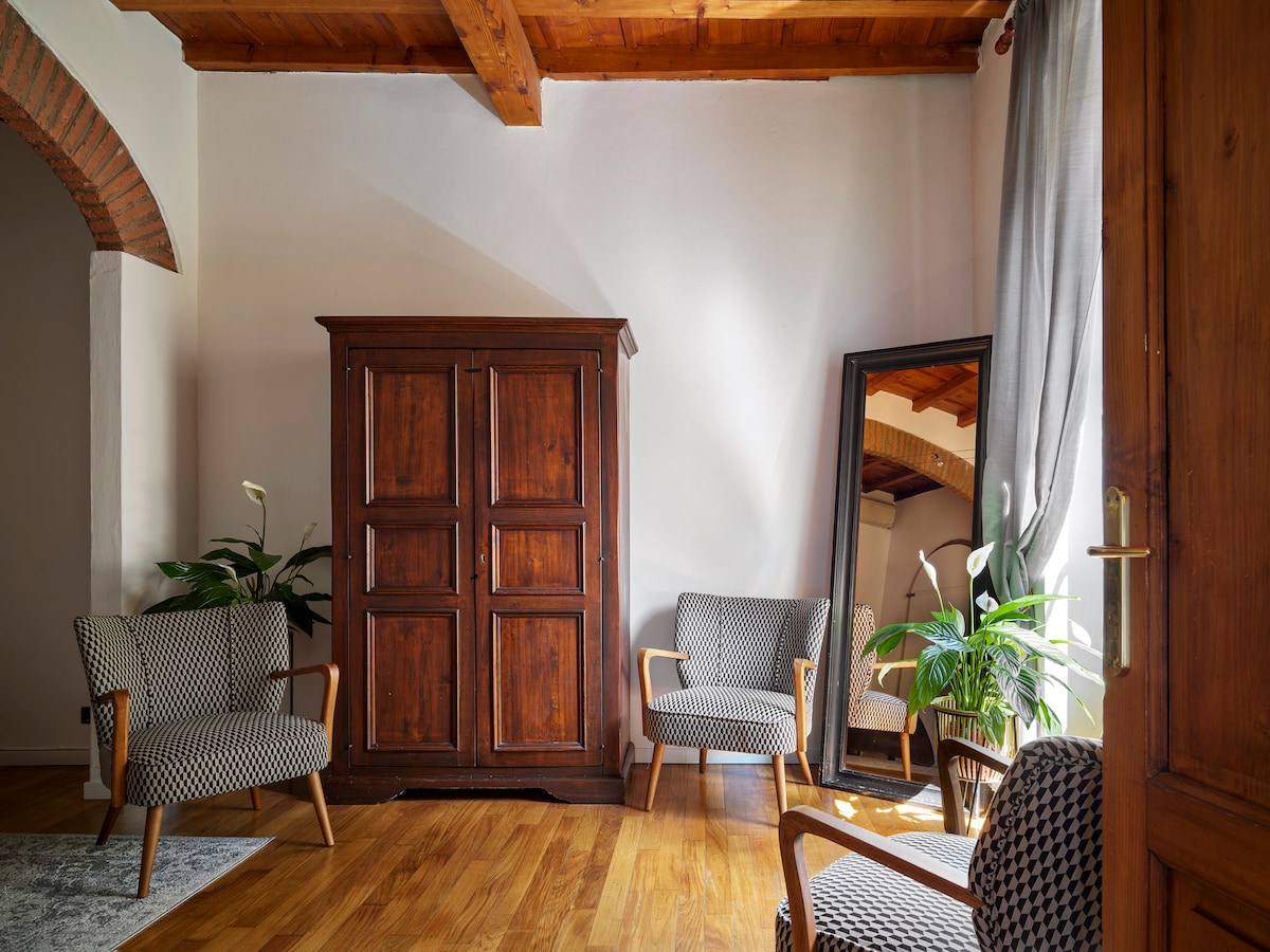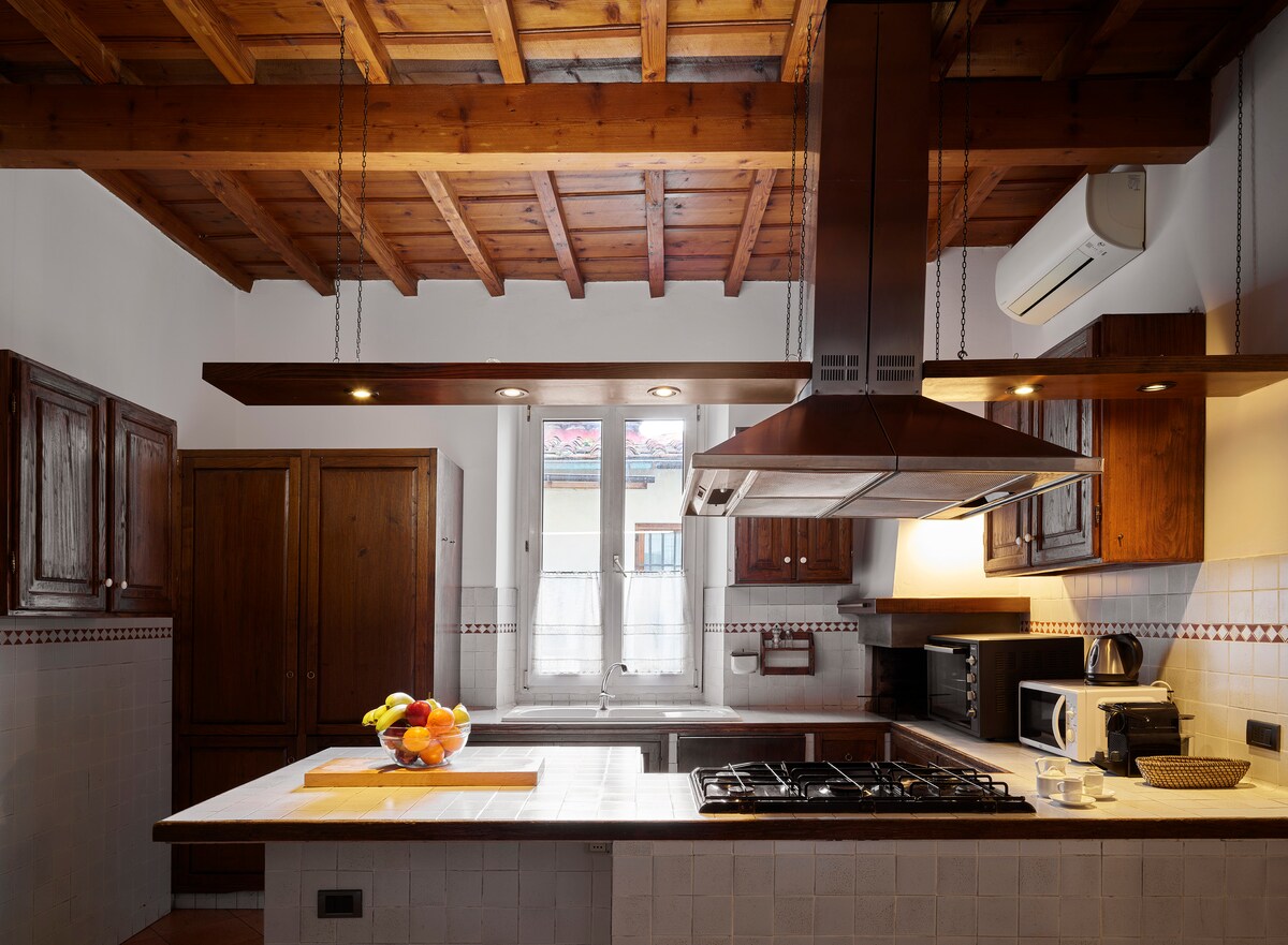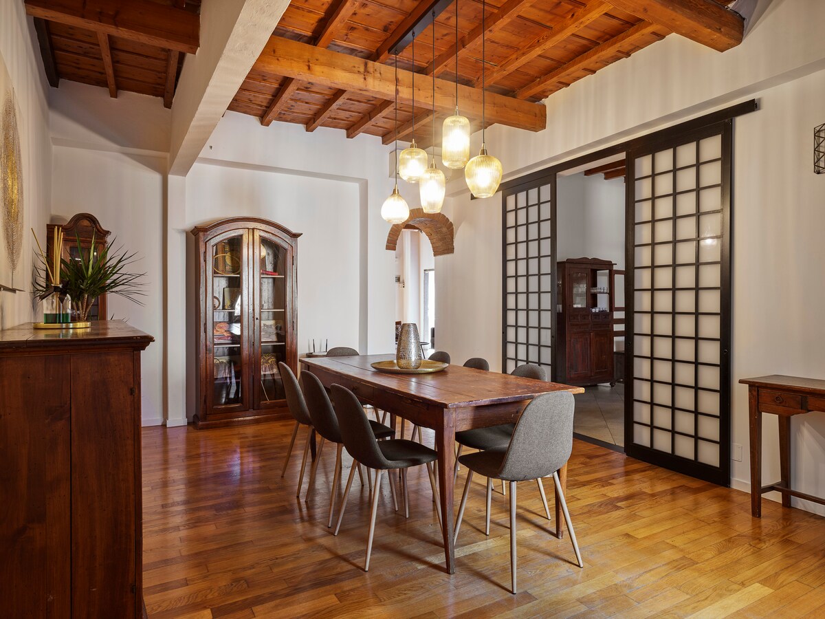 The apartment is all on one floor, with four bedrooms, of which two masters, one in the mezzanine, with the games room, a split in turn into a single room and a double room.The decor is a skilful mix of restored antique furniture, and modern, pieces of Florentine craftsmanship and handmade decorations, so you can breathe a very authentic Italian noble home atmosphere, with wooden ceilings and terracotta floors.
