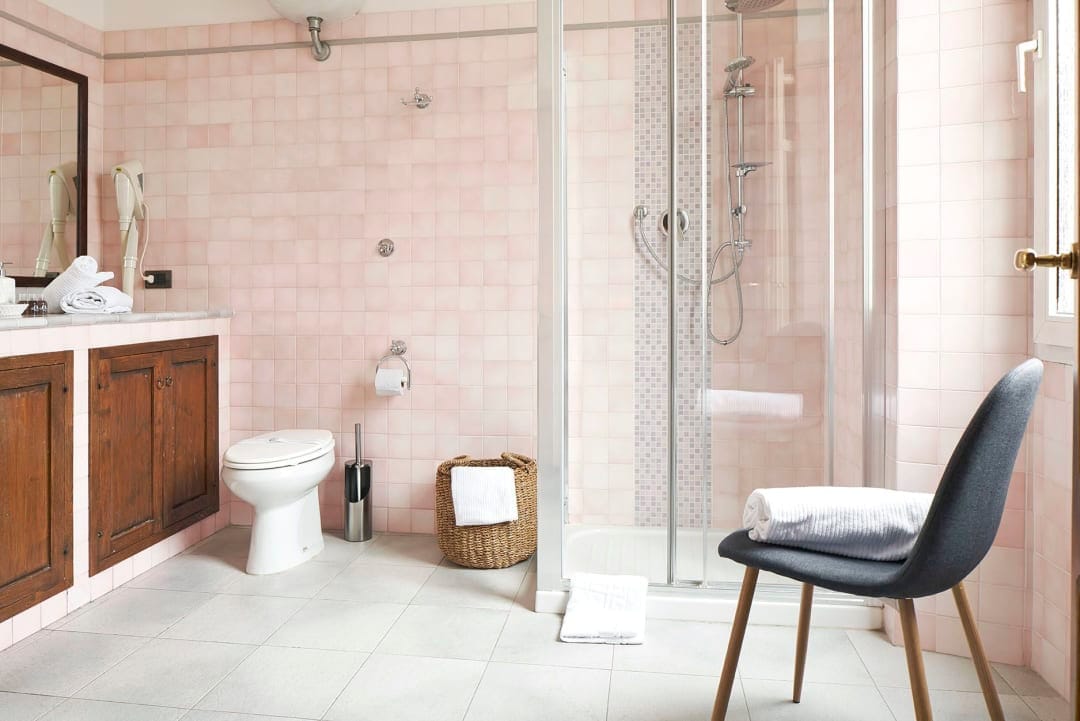 A bathroom with shower; The second master bathroom with shower and washing machine; All bathrooms have a heater, mirror lights, hair dryer.