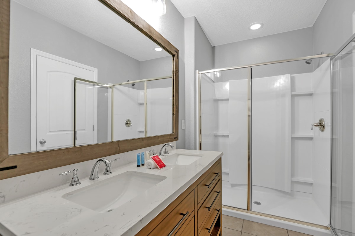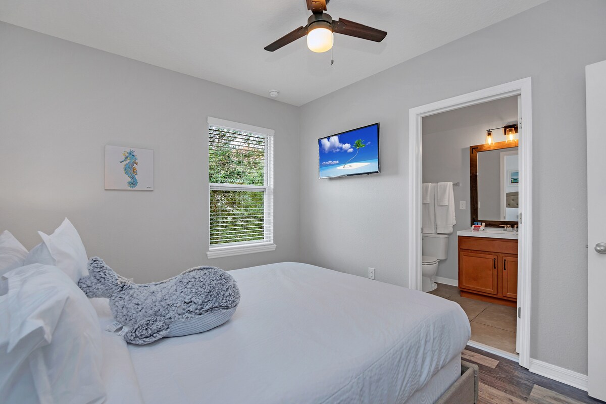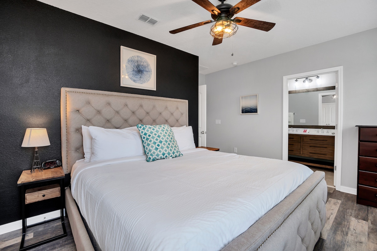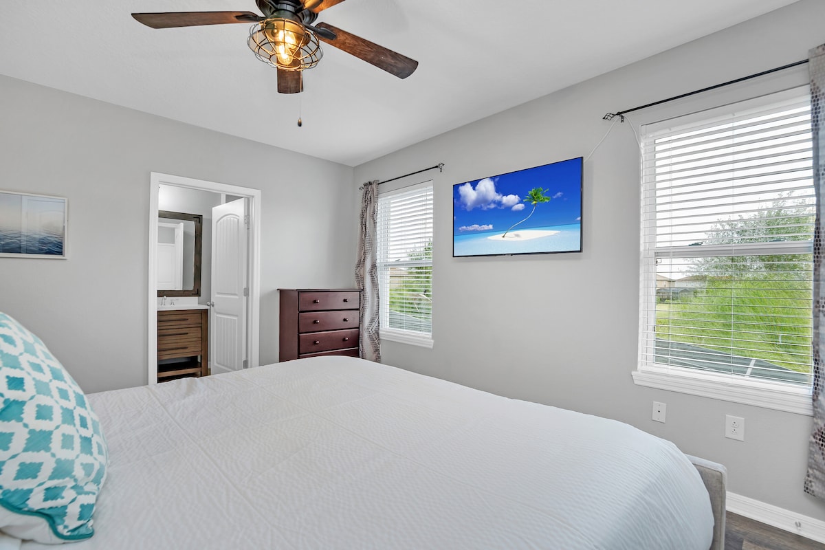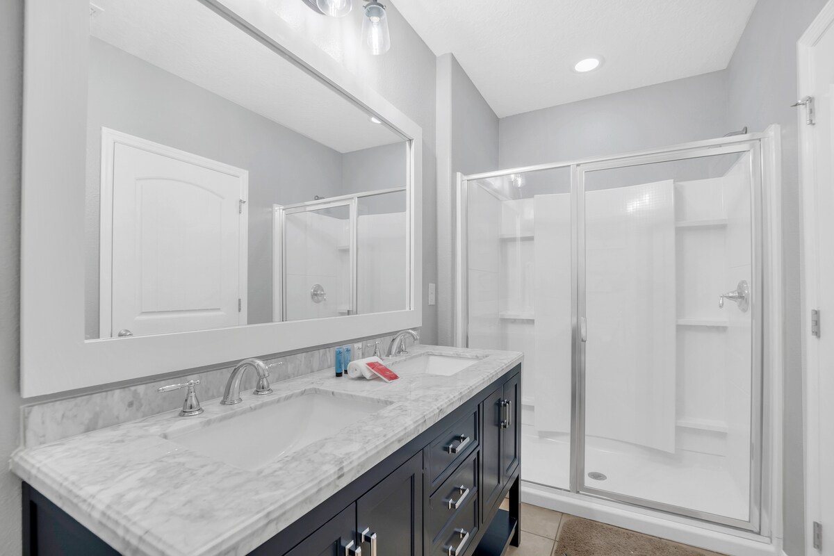 Each of the five bedrooms offers a cozy retreat with plush bedding, TVs, and high-speed Wi-Fi. Whether you prefer the Mickey-themed kids’ room or one of the other beautifully designed spaces, you’ll have the perfect place to recharge for the next day’s excitement.