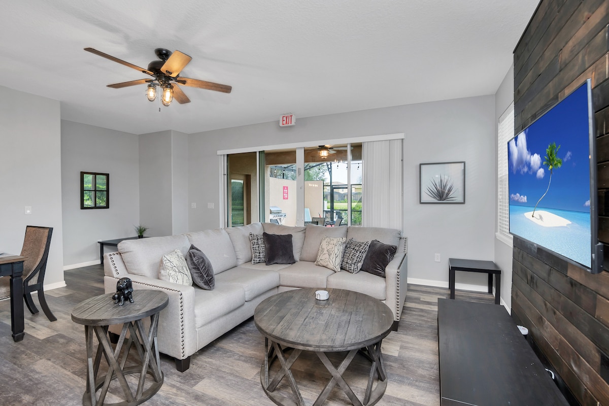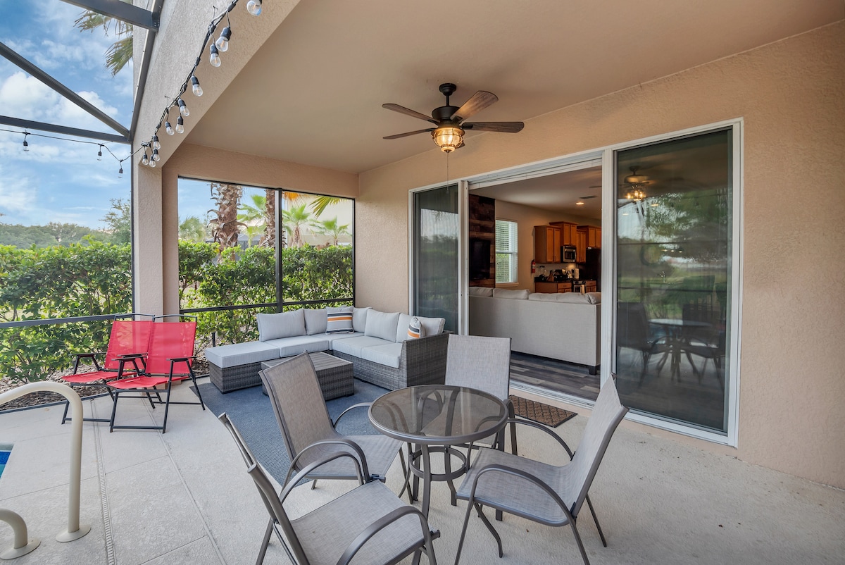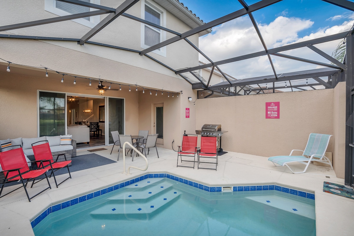 Step outside to your private screened-in patio, complete with a year-round pool, outdoor seating, and a BBQ grill. Enjoy morning coffee, family cookouts, or an evening swim under the stars, all in the comfort of your own space.
