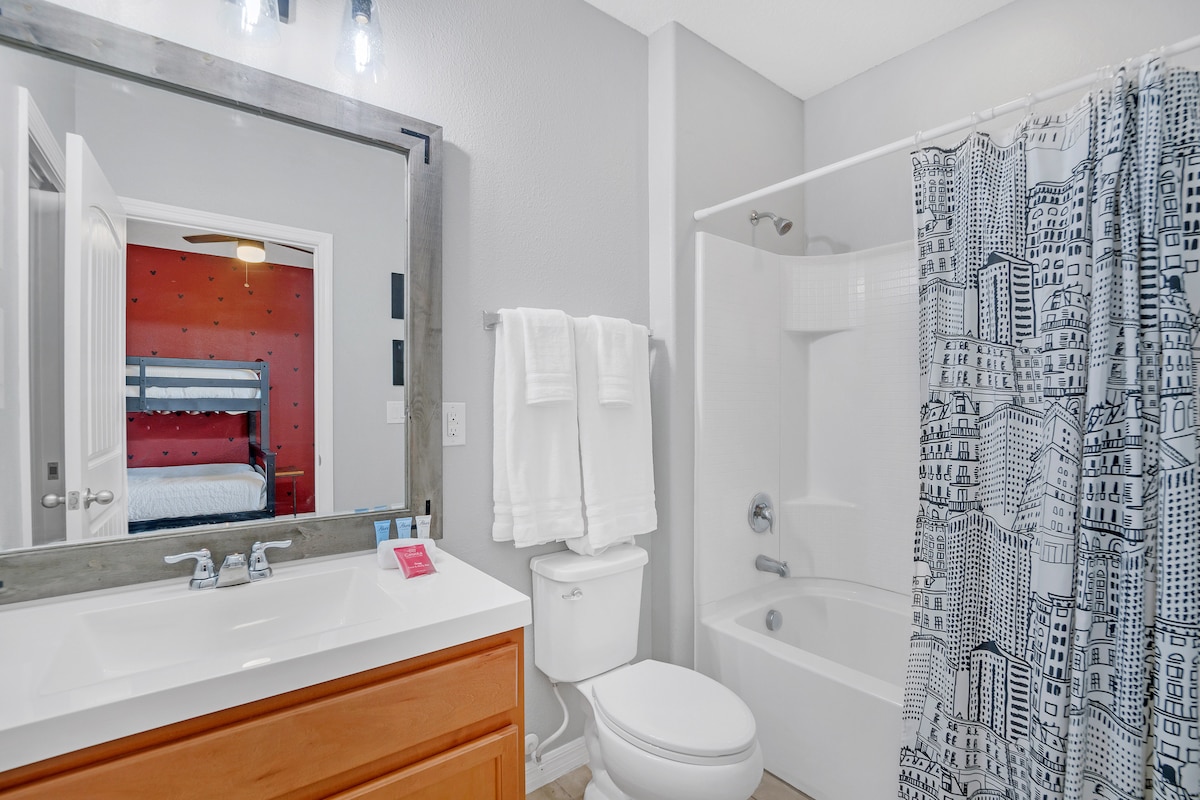 As a guest of Solterra Resort, you’ll have access to top-notch amenities, including a resort-style pool, fitness center, children’s playground, and 24/7 hot tub. These features ensure fun and relaxation for every member of your group.