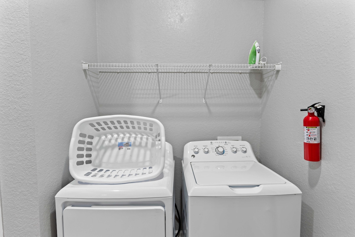 Enjoy the convenience of in-unit laundry with a full-size washer and dryer, perfect for refreshing your wardrobe after a day at Universal Studios or other nearby attractions. The condo also offers a second bathroom for added convenience. A balcony with serene views.