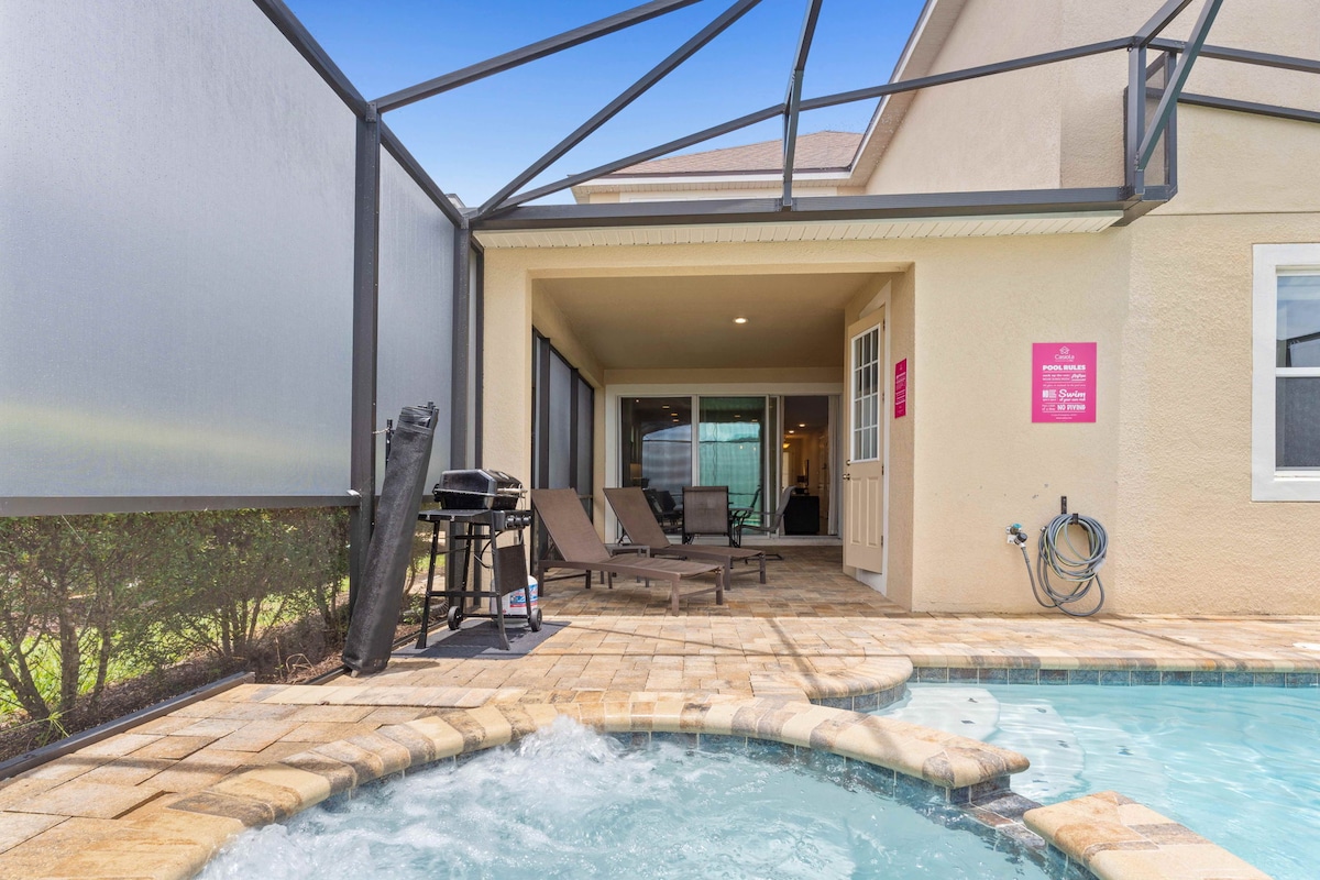 Step outside to your private pool and spa, surrounded by comfortable lounge chairs and privacy screens. Enjoy meals on the patio with the BBQ grill, or simply soak in the Florida sunshine. This outdoor retreat is ideal for relaxation after a day at the parks.