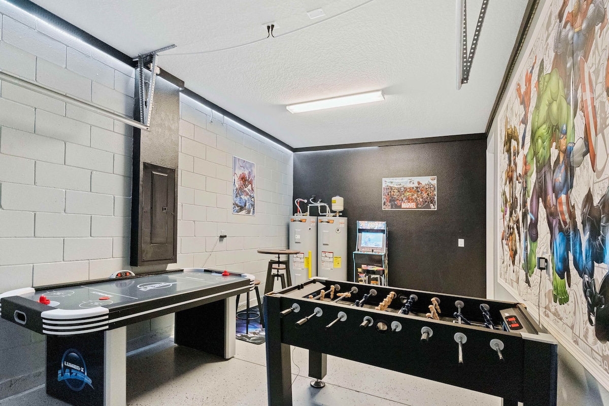 This home features endless entertainment options, including a game room with arcade games, foosball, and a hockey table. Kids will love the themed playroom with toys, books, and games, while the entertainment loft with a gaming console is perfect for older guests.