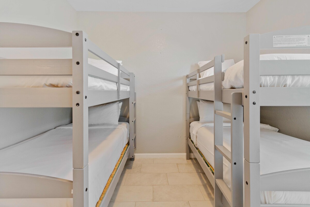 The condo offers two additional bedrooms, each thoughtfully designed for comfort. The second bedroom includes a double bed and a single bed, making it perfect for families or groups. The third bedroom features two single-size bunk beds, providing cozy accommodations for up to four guests.
