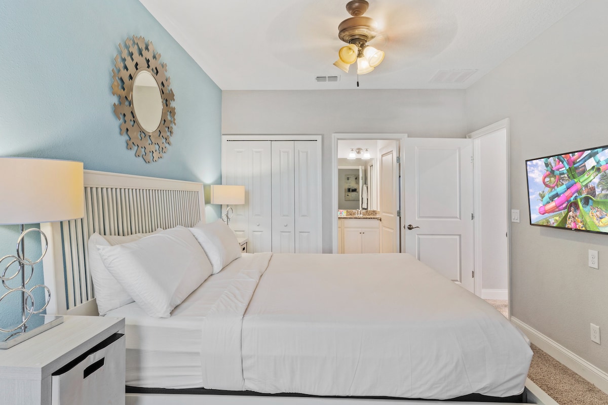 Festival Resort itself offers an array of amenities for guests to enjoy, including a stunning clubhouse with a fitness center, resort-style swimming pool, water park, and playgrounds for the little ones. With its convenient location near Disney World and a wealth of amenities, our vacation home at Festival Resort promises an unforgettable escape for your next Orlando adventure.