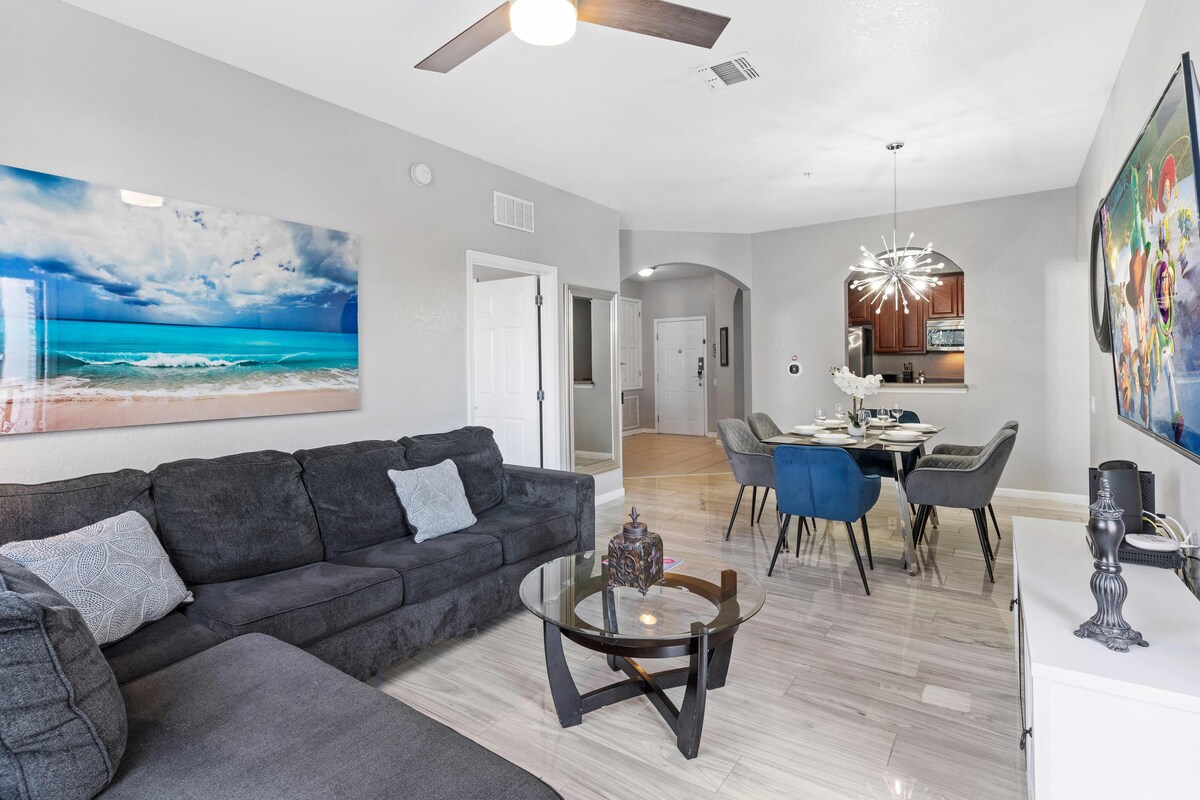 Step into a beautifully designed 3-bedroom, 2-bathroom condo located in the heart of Central Florida. Whether you're planning a family adventure, a group trip, or a relaxing retreat, this space combines comfort, style, and convenience for a truly unforgettable vacation. From easy access to top attractions to resort-style amenities, every detail is thoughtfully designed to enhance your stay.