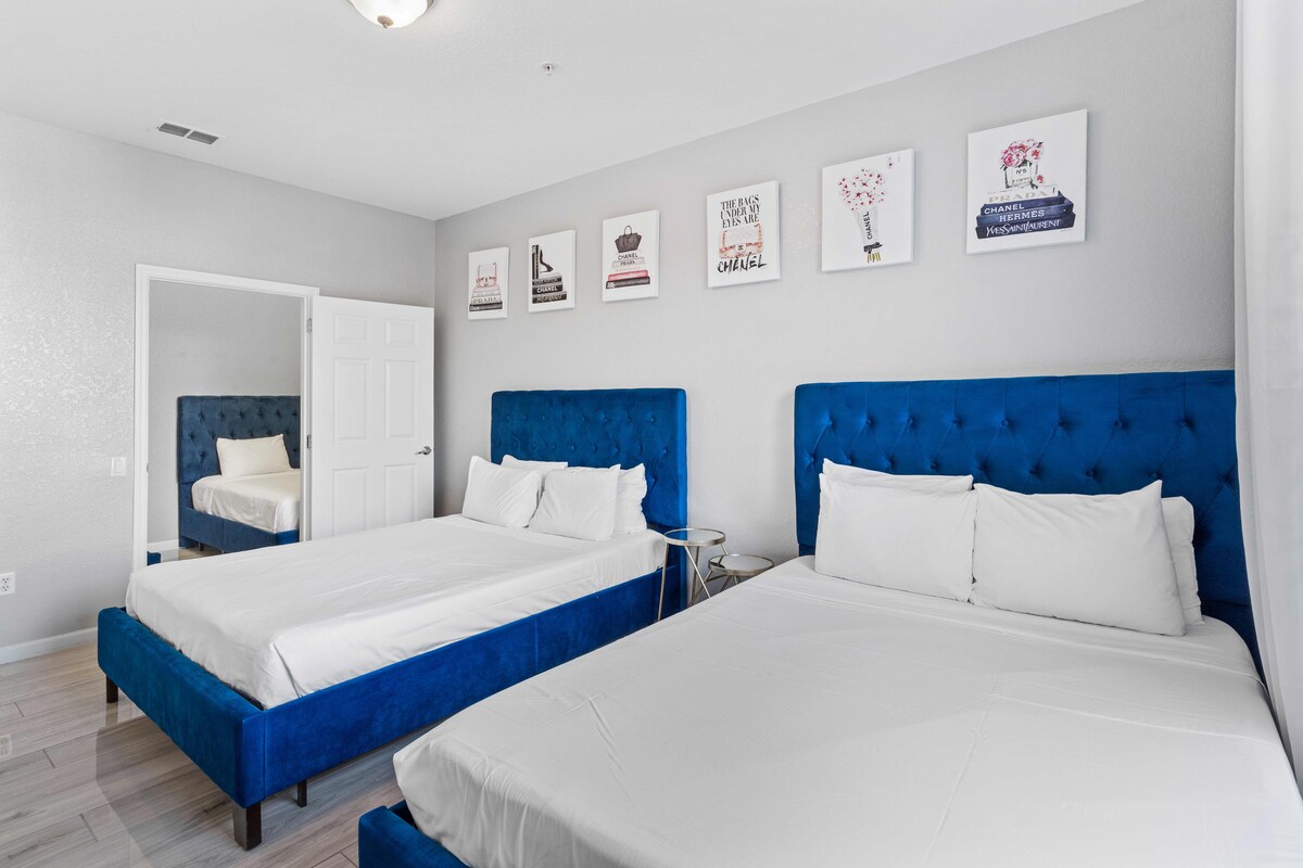 After a fun-filled day, retreat to one of three comfortable bedrooms. The master suite offers a plush king-size bed, while the other two bedrooms feature cozy queen-size beds. For the little ones, a converted closet area has been transformed into a charming sleeping nook, creating a perfect space for kids to recharge.
