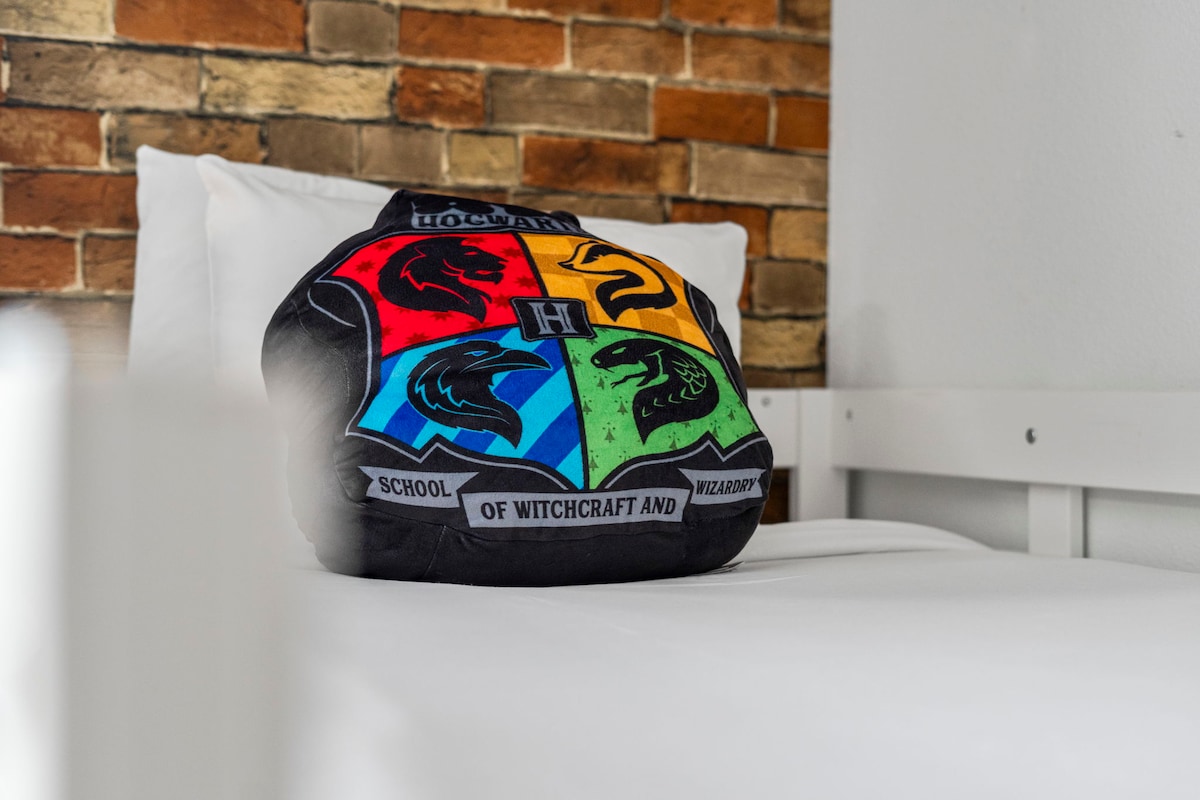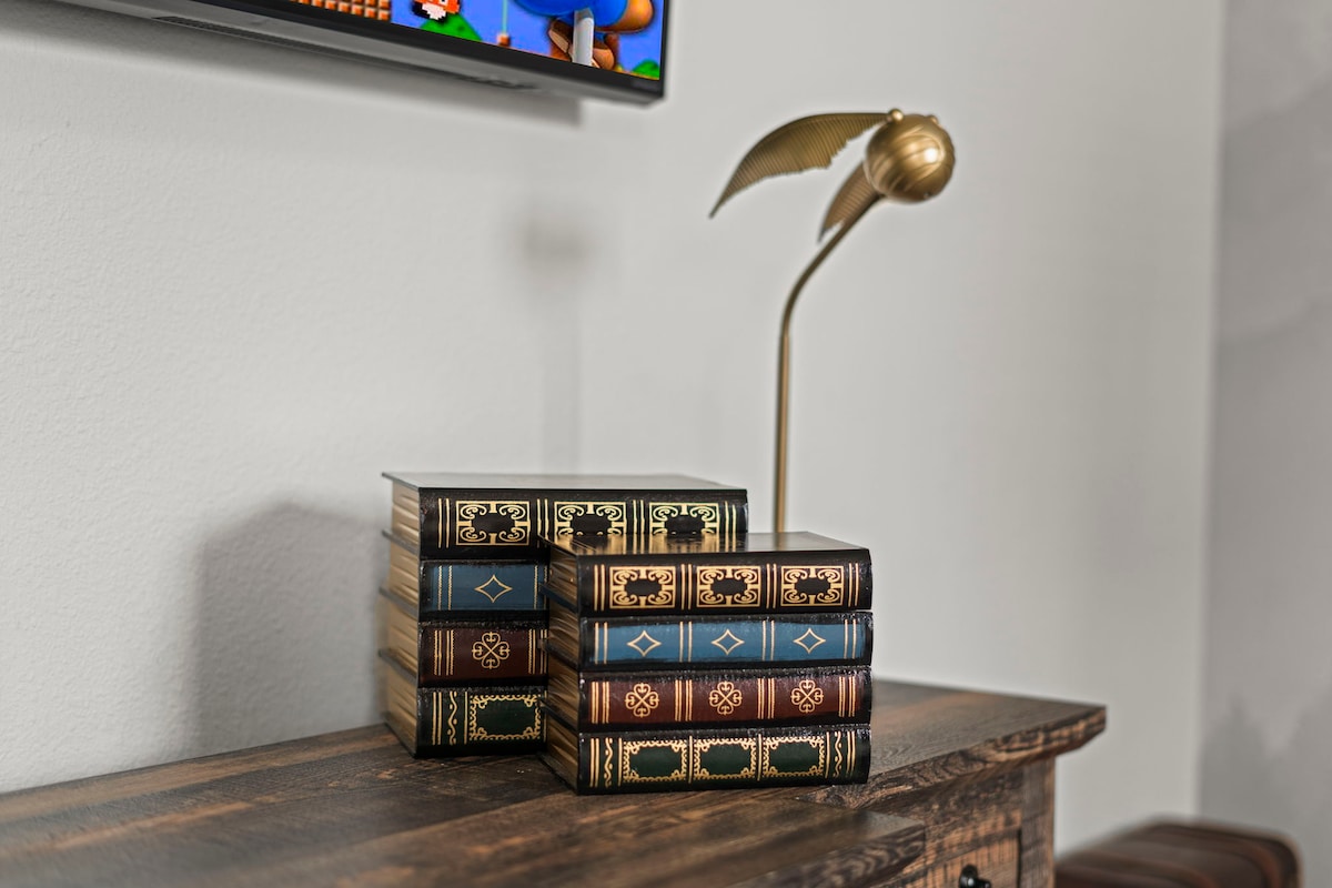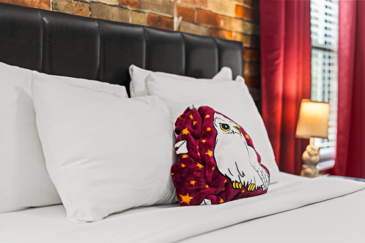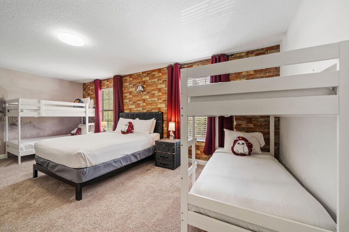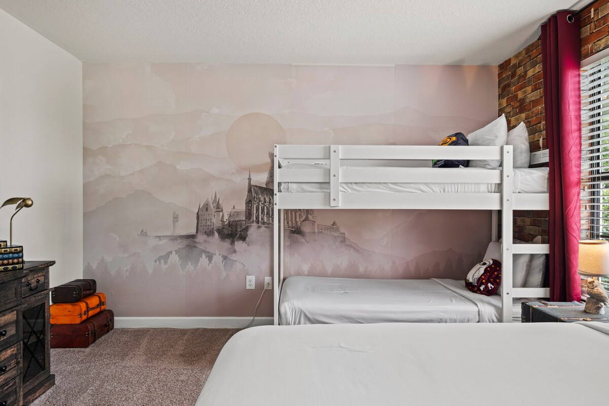 Themed bedrooms bring the magic to life for kids (and the young at heart), including a Harry Potter-inspired room with custom wallpaper, magical décor, and Hogwarts energy. Adults will appreciate the calm, comfortable master suites designed for real rest.