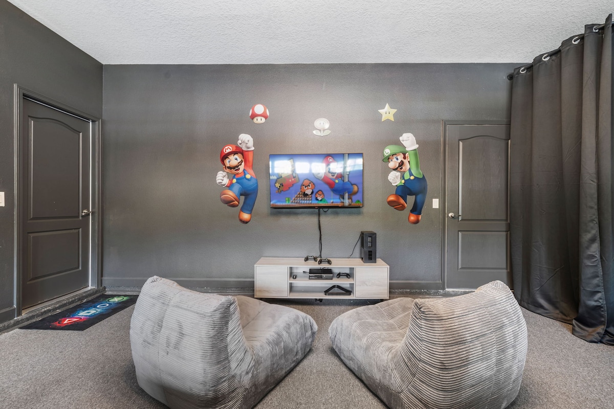 This 9BR ChampionsGate home is your dream getaway! Just minutes from Disney, it’s been fully renovated with a Super Mario game room and a Harry Potter-themed bedroom — fun for the whole family. The loft has been transformed into a cozy movie night haven, and the private pool is ready for relaxation. Plus, you’ll have access to amazing resort perks. With a full kitchen and fast WiFi, this home has everything you need for an unforgettable vacation. Discounted rates live — book while they last!