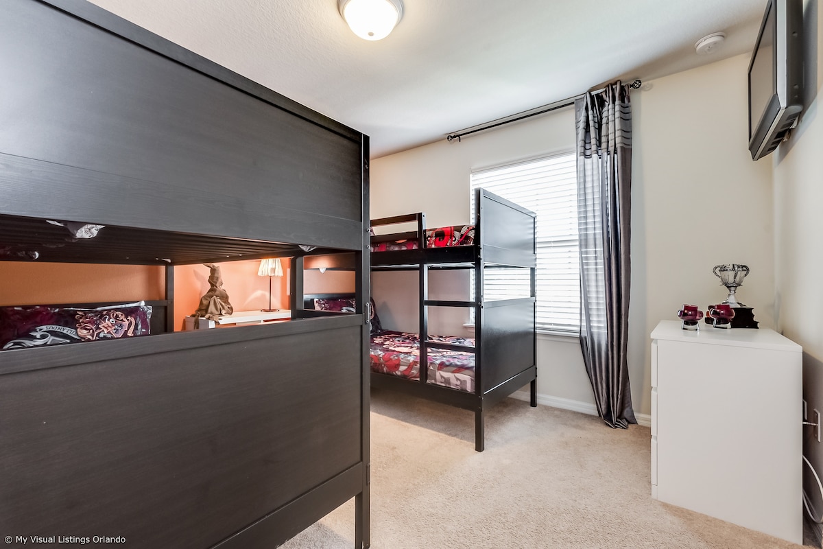 Welcome to your dream vacation home!Nestled in the vibrant Windsor at Westside Resort, our 5-bedroom townhouse is the perfect blend of comfort, style, and convenience. Designed with families and groups in mind, this Central Florida retreat is a haven for creating unforgettable memories. From themed kids’ bedrooms to a private pool and access to resort-style amenities, this property has everything you need for a magical stay near Orlando’s top attractions.