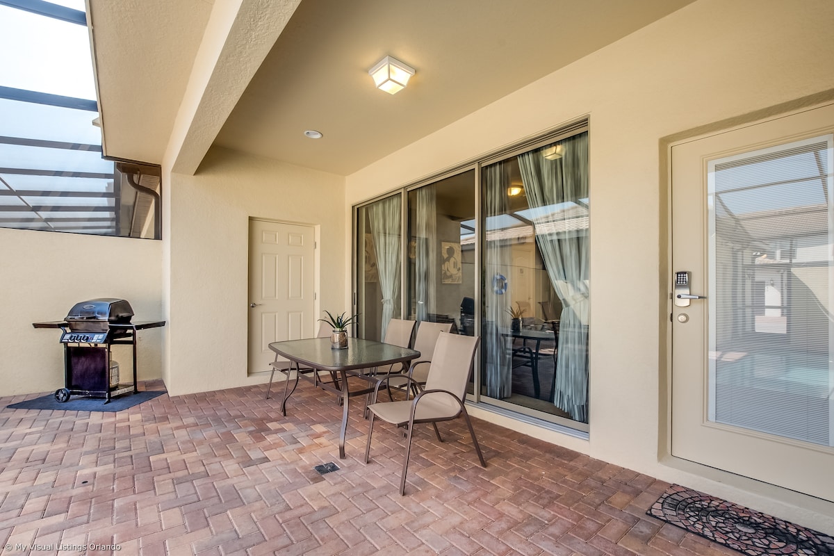 Step into your private outdoor oasis, complete with a screened-in lanai and sparkling swimming pool. Relax poolside with comfortable outdoor furniture or enjoy a refreshing dip after a day at the parks. This private retreat offers the perfect blend of fun and relaxation.