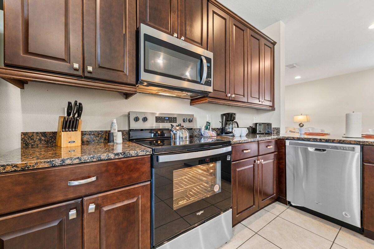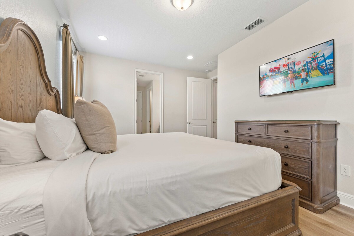 The property features a private patio perfect for relaxation. Guests can enjoy a refreshing swim in the private pool or utilize the outdoor furniture for dining al fresco. The outdoor area provides a serene retreat away from the excitement of nearby attractions.