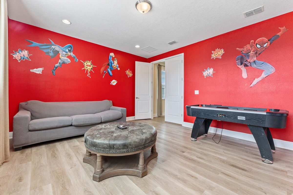 Experience ultimate comfort in this 6BR home at Encore Resort, which is perfect for large groups. Unwind by the private pool, dine al fresco on the patio, and enjoy a Star Wars-themed room for kids. Access to a fully equipped kitchen, spacious living area, and high-speed Wi-Fi makes it ideal for work and play. Conveniently located just a short drive from Walt Disney World and Universal Studios, this home offers free parking, flat screen TVs, and all essentials, ensuring an unforgettable stay.