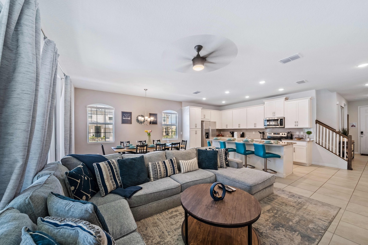Designed with style and comfort in mind, the spacious living area is perfect for relaxing after a fun-filled day. Sink into plush seating, watch your favorite shows on the smart TV, or enjoy quality time with loved ones. This beautifully decorated space invites you to unwind and create lasting memories together.