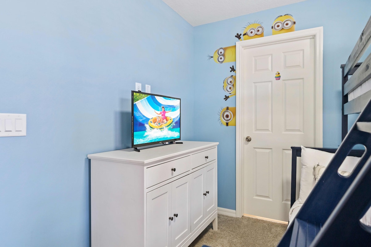 Kids will adore the creatively themed bedrooms, including Mickey Mouse, Minions, and Avengers designs. These playful spaces offer a magical retreat for younger guests, complete with fun decor and smart TVs for entertainment. It’s the perfect spot for little ones to dream big after a day of excitement.