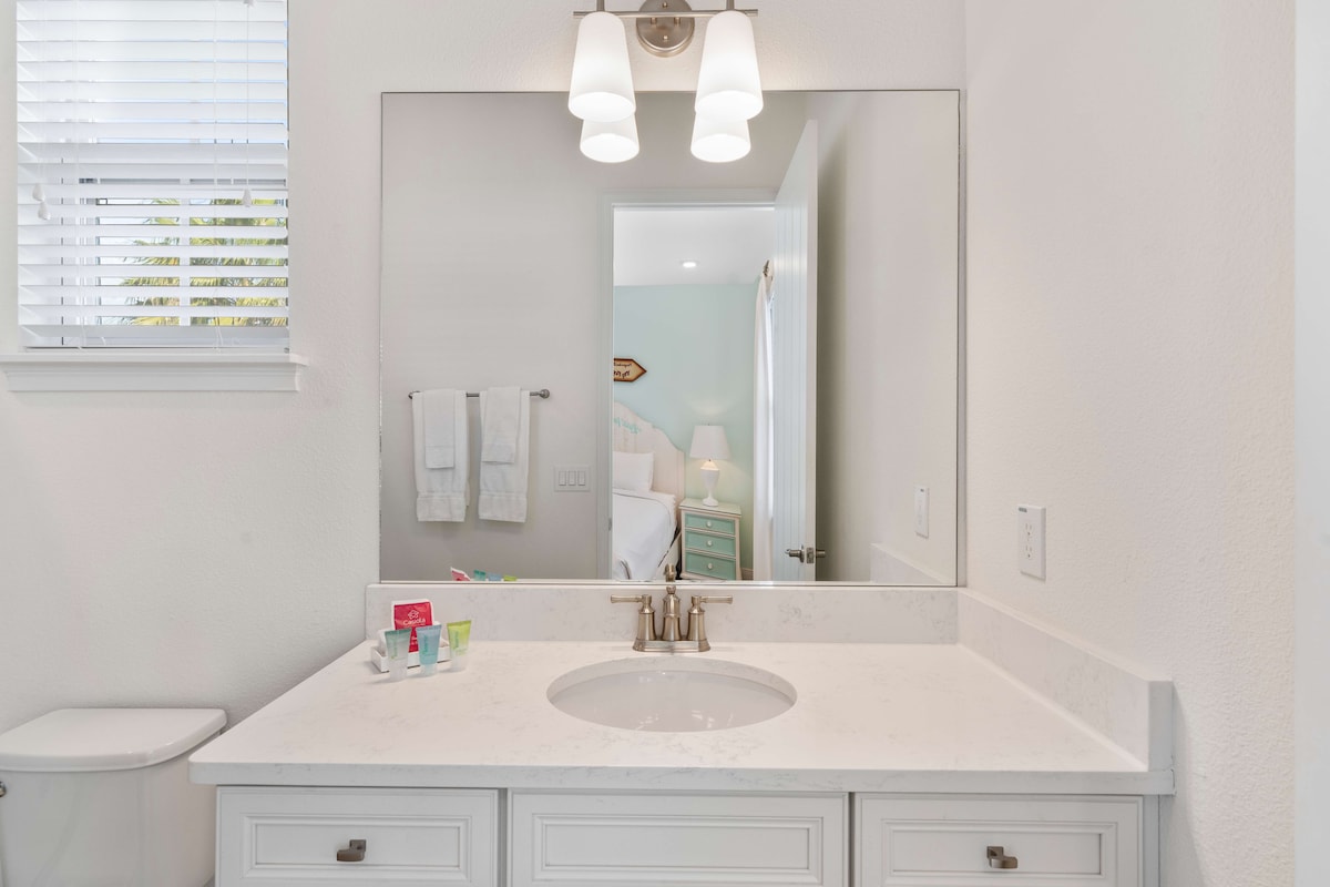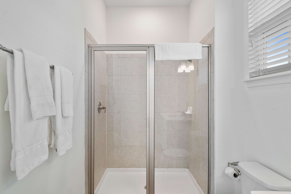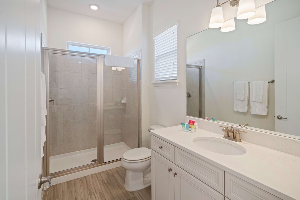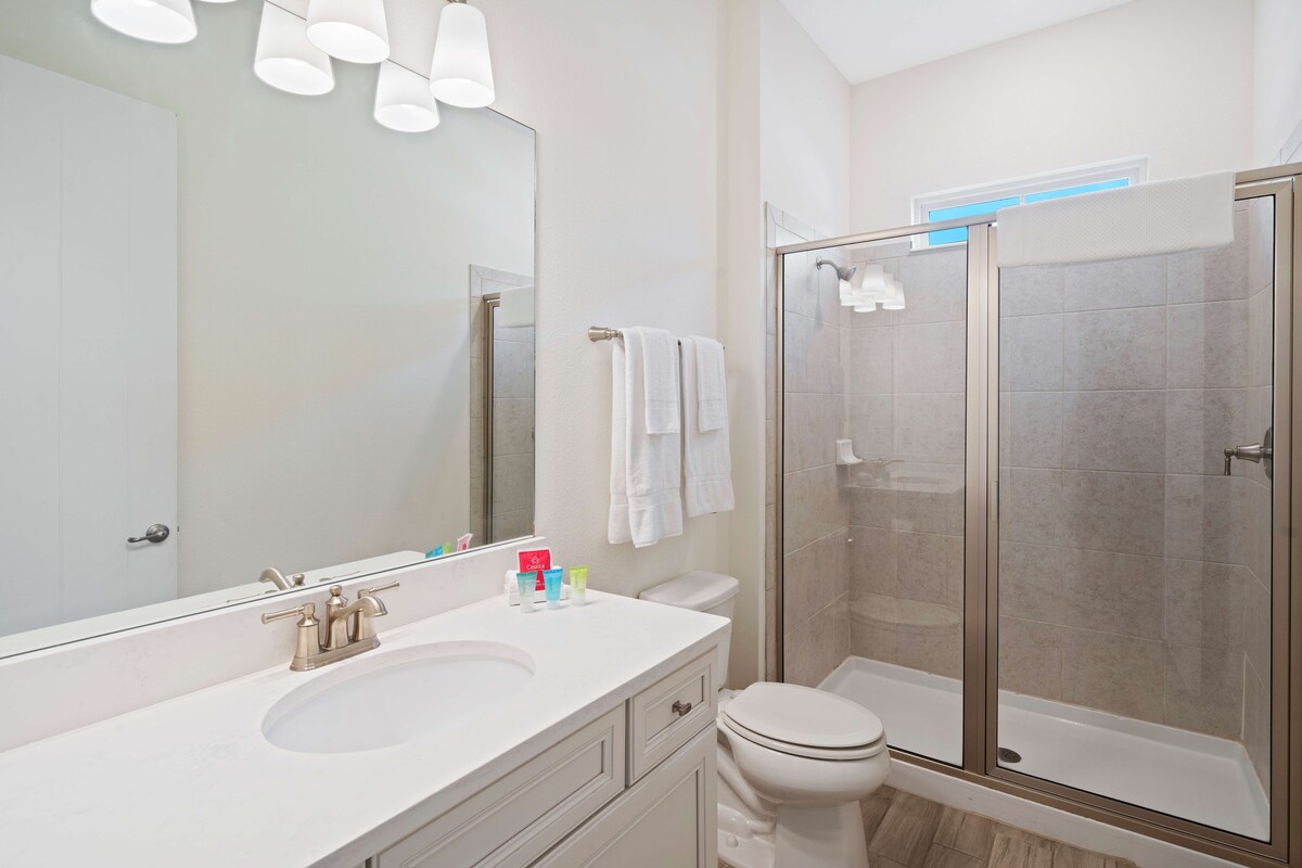 Each of the four bedrooms is thoughtfully designed for maximum comfort and relaxation. With plush double beds, private bathrooms, and smart TVs in each room, you’ll enjoy a peaceful night's rest in a modern setting. These rooms offer the perfect escape to recharge for another day of Central Florida exploration.