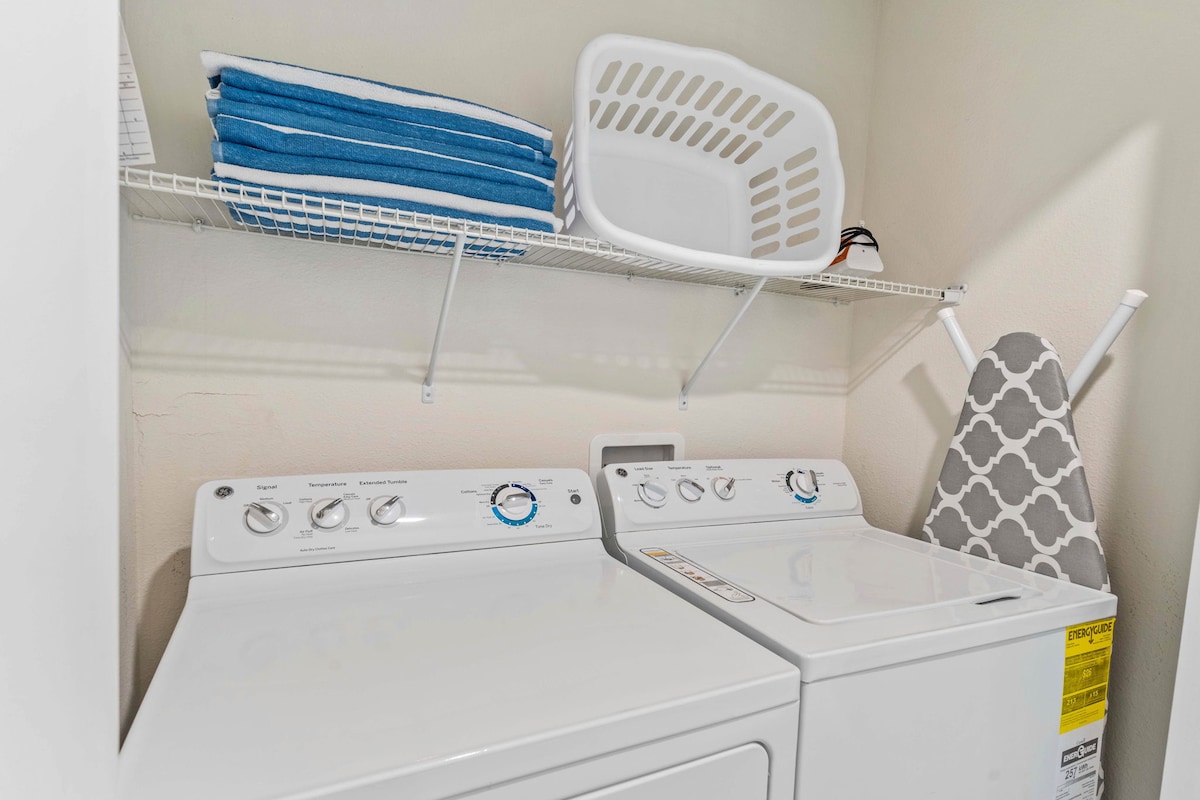 Traveling with young children is a breeze with family-friendly amenities like a high chair and sun loungers. The home is equipped with all the essentials, including a washer, dryer, and hairdryer, so you can pack light and feel at home. Long-term stays are welcome, providing everything needed for an extended Orlando getaway.
