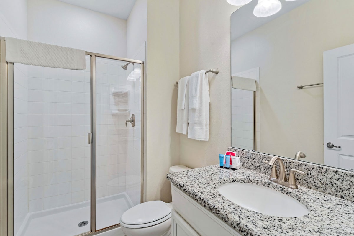 As a guest of Champions Gate Resort, you have access to a wealth of modern amenities. Enjoy resort-style pools, unwind in the relaxing hot tubs, or stay active in the fitness center. For added fun, splash around in the water park or play a round at the championship golf courses. With on-site dining, entertainment, and more, the resort offers something for everyone, enhancing your vacation with added fun and comfort.