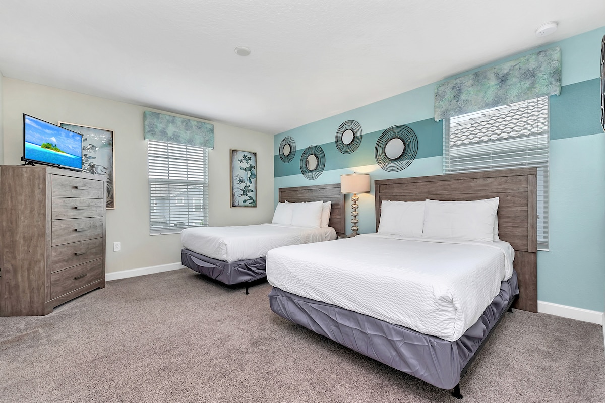 The property offers 5 beautifully appointed bedrooms, each designed to provide comfort and style. The master bedroom is a luxurious retreat, while additional themed bedrooms include a Mickey-inspired room. Guests can enjoy a total of 7 beds, configured to meet various sleeping arrangements, and 5 modern bathrooms with all necessary amenities.