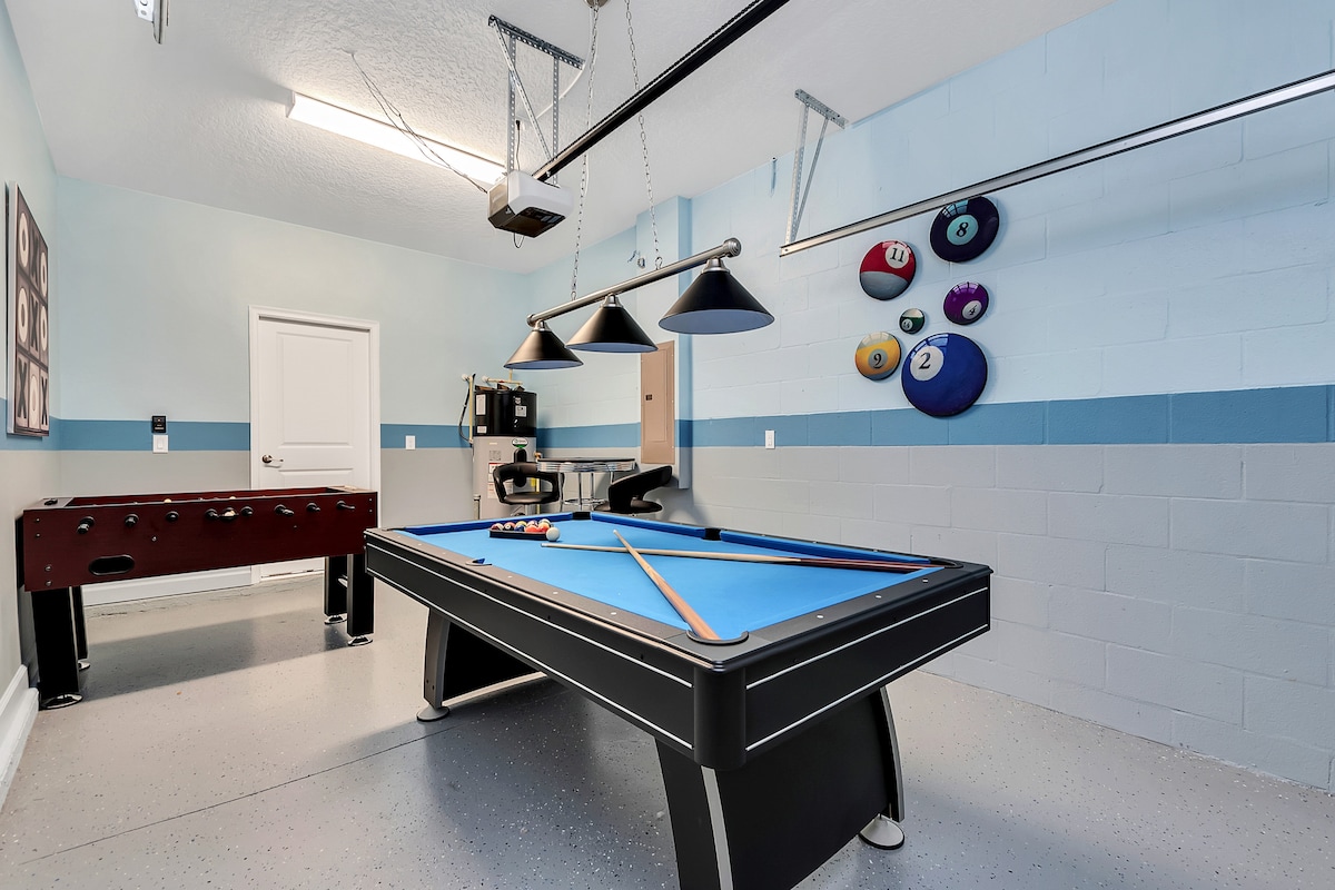 As part of the ChampionsGate Resort, guests have access to a variety of shared amenities, including the 25,000-square-foot 'Oasis Clubhouse'. Features include a zero-entry family pool, whirlpool, kids' pool, splash pad, waterslides, lazy river, adults-only pool, Tiki Bar, spa, full-service restaurant, bar, fitness center, aerobics room, game/arcade room, movie theater, and sports courts.
