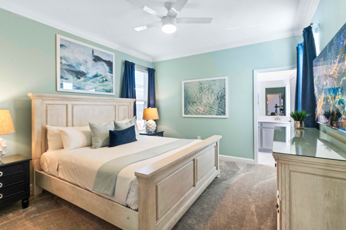 Every bedroom is equipped with a Smart TV, and almost all have a ceiling fan, ensuring everyone can relax in comfort and enjoy their favorite entertainment. High-speed free WiFi throughout the home means you can stay connected and plan your Orlando adventures with ease.