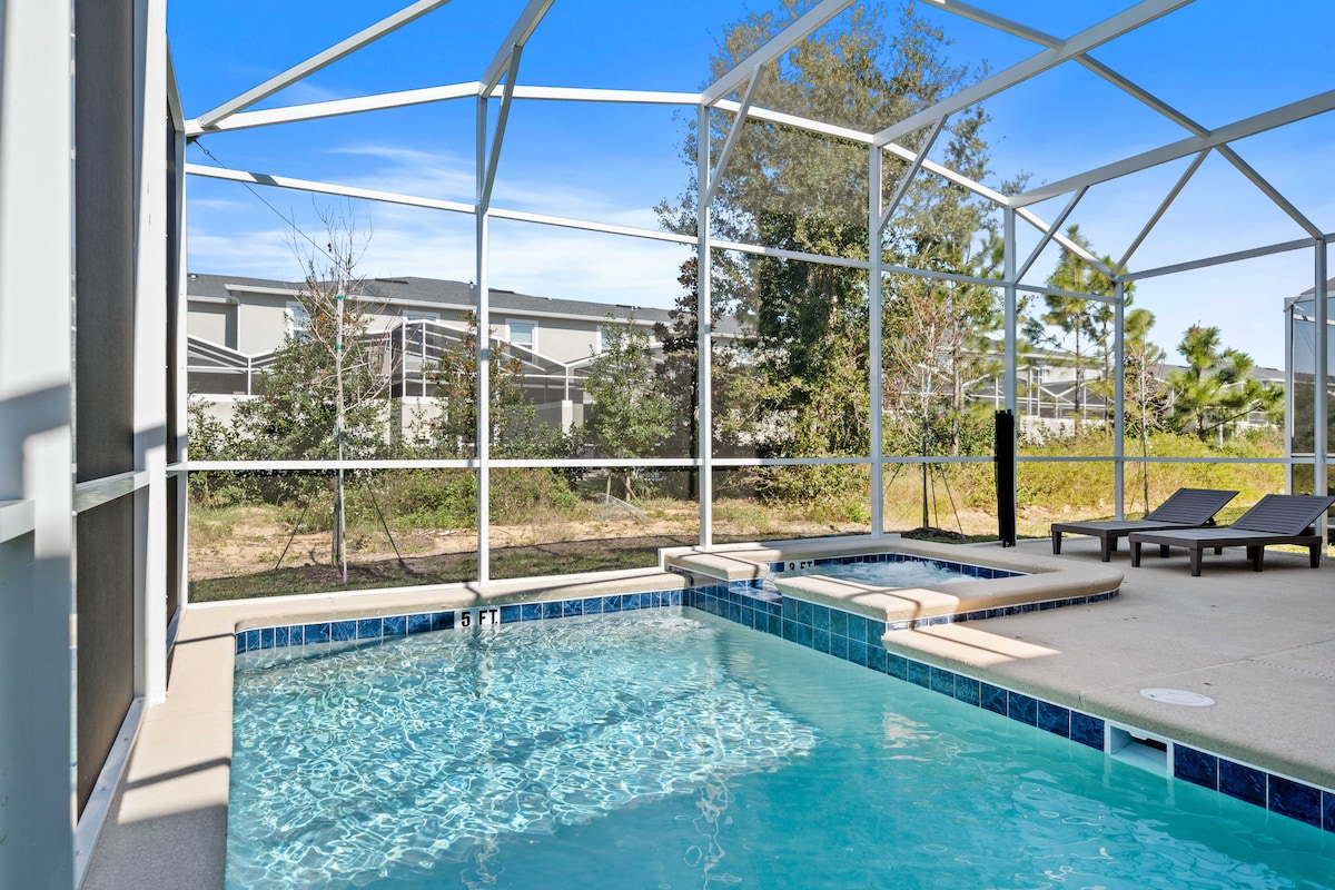 Unwind in the comfort of your vacation home, complete with a private pool for ultimate relaxation. Every detail is designed to ensure comfort, from air conditioning and heating to a private hot tub, making this the ideal space for a memorable stay in Central Florida.