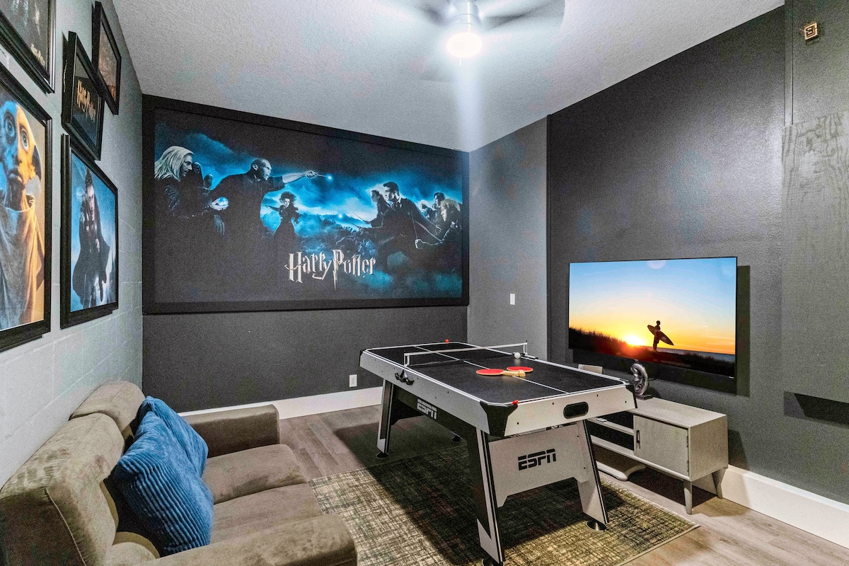 - Themed 6BR home with a Harry Potter themed game room and private movie theater.