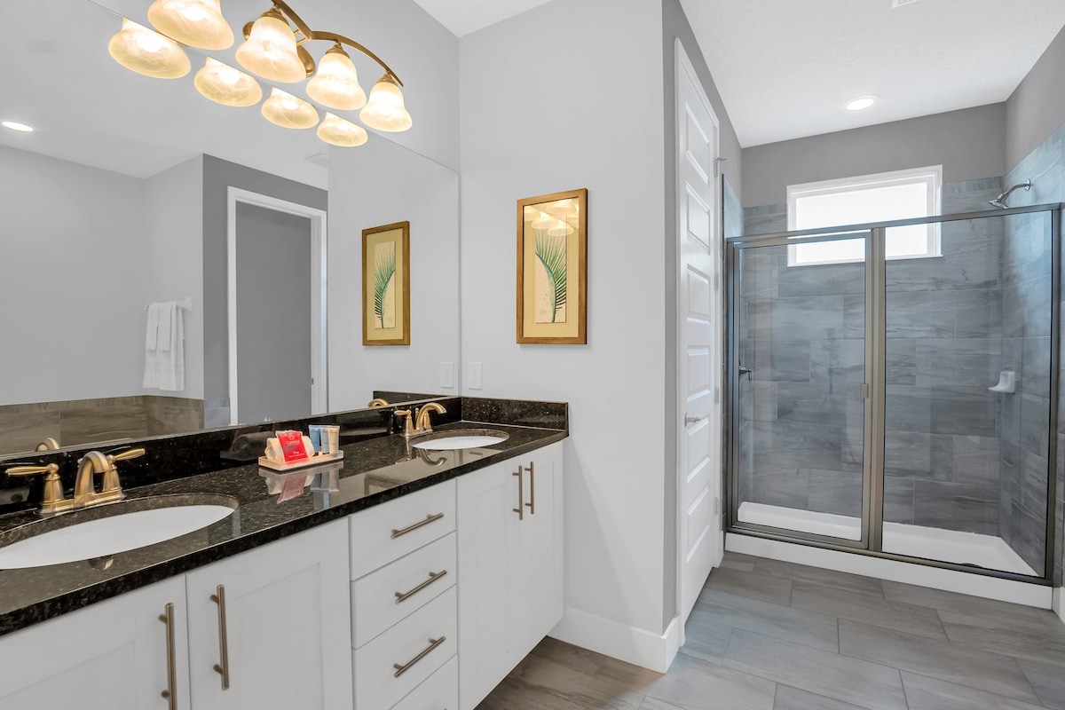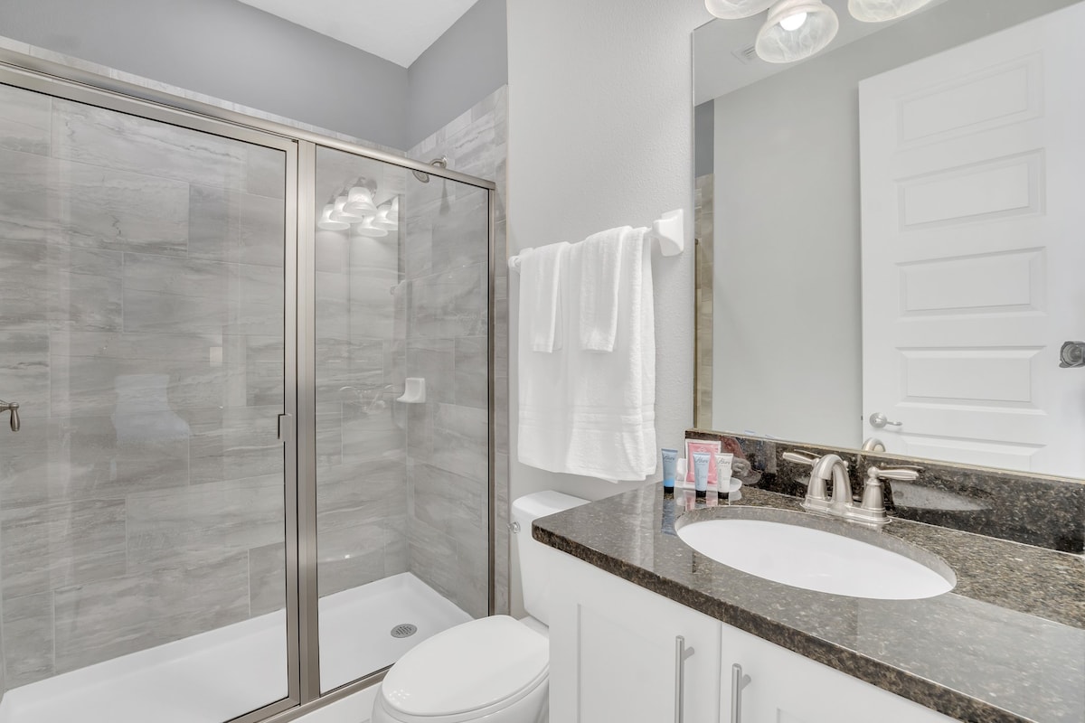 We were a family of 10 celebrating my daughter’s 21st birthday by going to Disney World , and the house was perfect ! Each bedroom had a bathroom and the beds were very comfortable! We had an issue with the AC at 815pm and there was someone to fix it within and hour and completed the fix and the AC was back up and running . The host was extremely responsive and helpful!