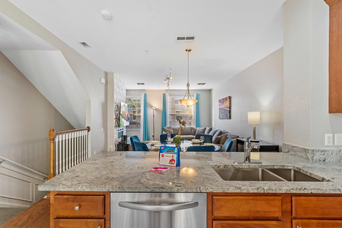 Nestled within the Vista Cay Resort, this townhouse offers guests access to a wide range of resort-like amenities, including two heated pools, hot tubs, a game room, and an incredible fitness center. Enjoy outdoor sports like basketball and tennis, or unwind with fun times playing mini-golf or lounging by the poolside bar. For the little ones, there’s an outdoor playground to keep them entertained.
