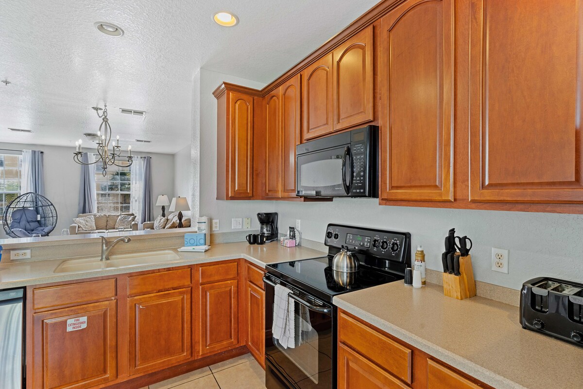 This townhome is designed with families in mind. A Pack ‘n Play, high chair, and other essentials are provided for young children, making it easy to travel with little ones. The outdoor playground and resort pool offer additional entertainment for kids, while parents can relax knowing that the home is safe and family-friendly.
