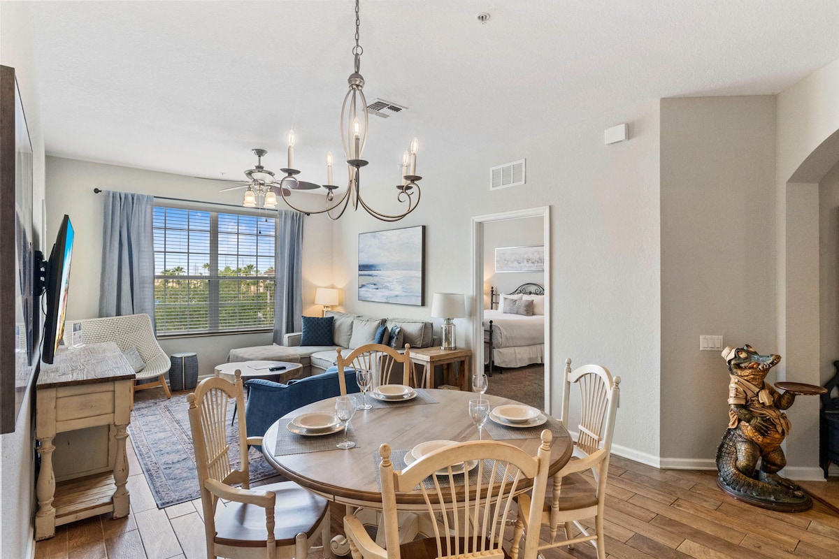 Gather around the dining table and indulge in memorable meals with family and friends. Whether you're savoring a home-cooked breakfast or relishing a decadent dinner, our dining area provides the perfect setting for shared moments and delightful conversations. Take in the views of the resort grounds through expansive windows as you dine in style.