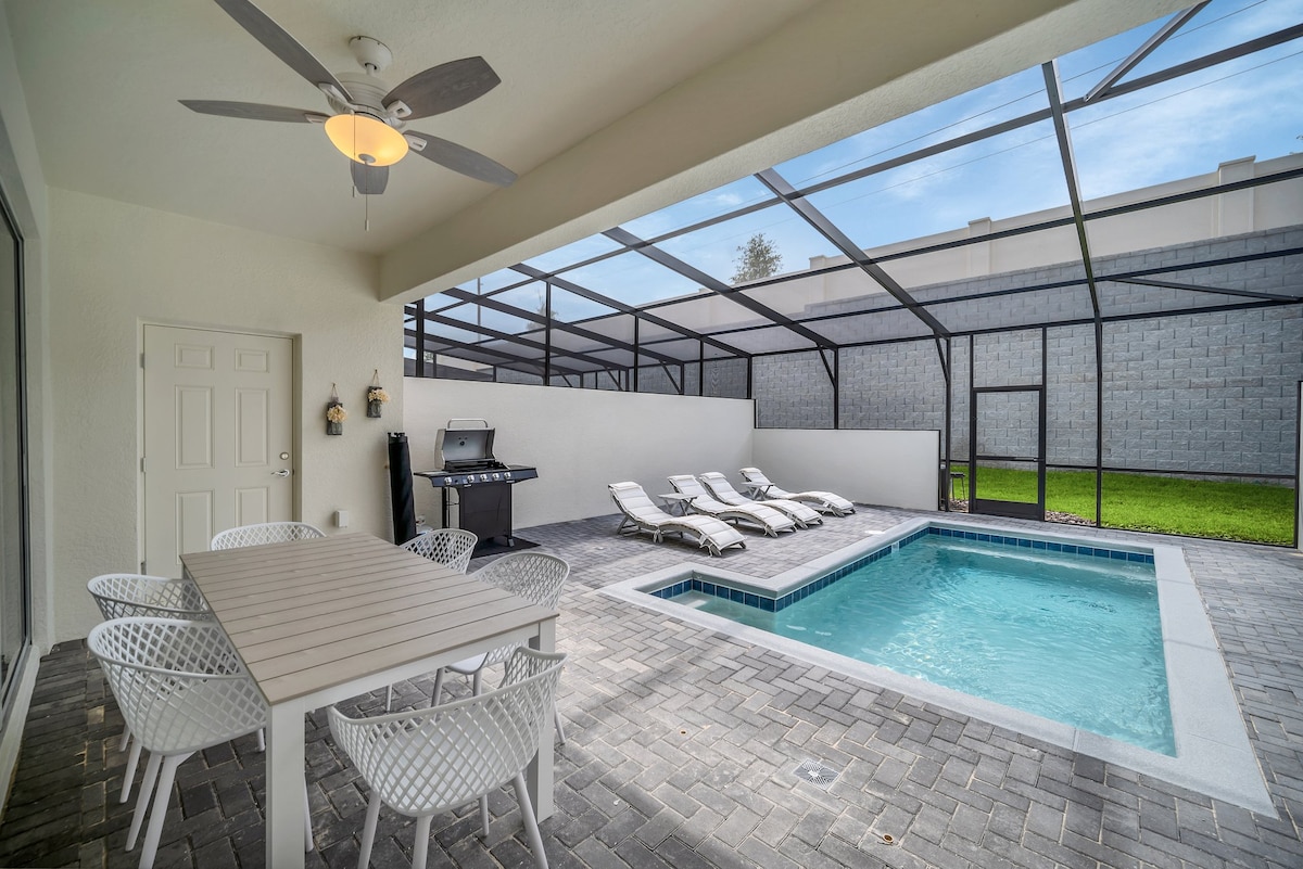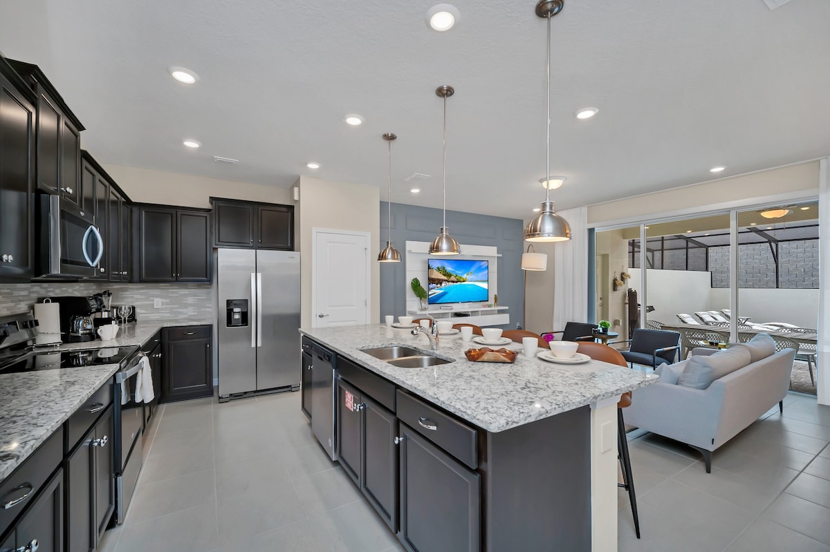 Step outside to your private screened-in lanai, where relaxation and fun await. Take a refreshing dip in the splash pool, lounge in the sun, or enjoy a BBQ with the family.