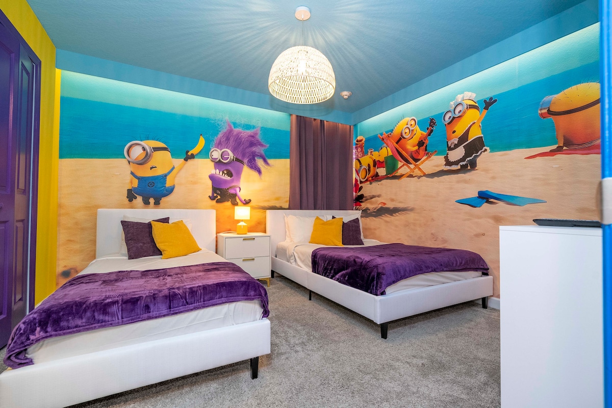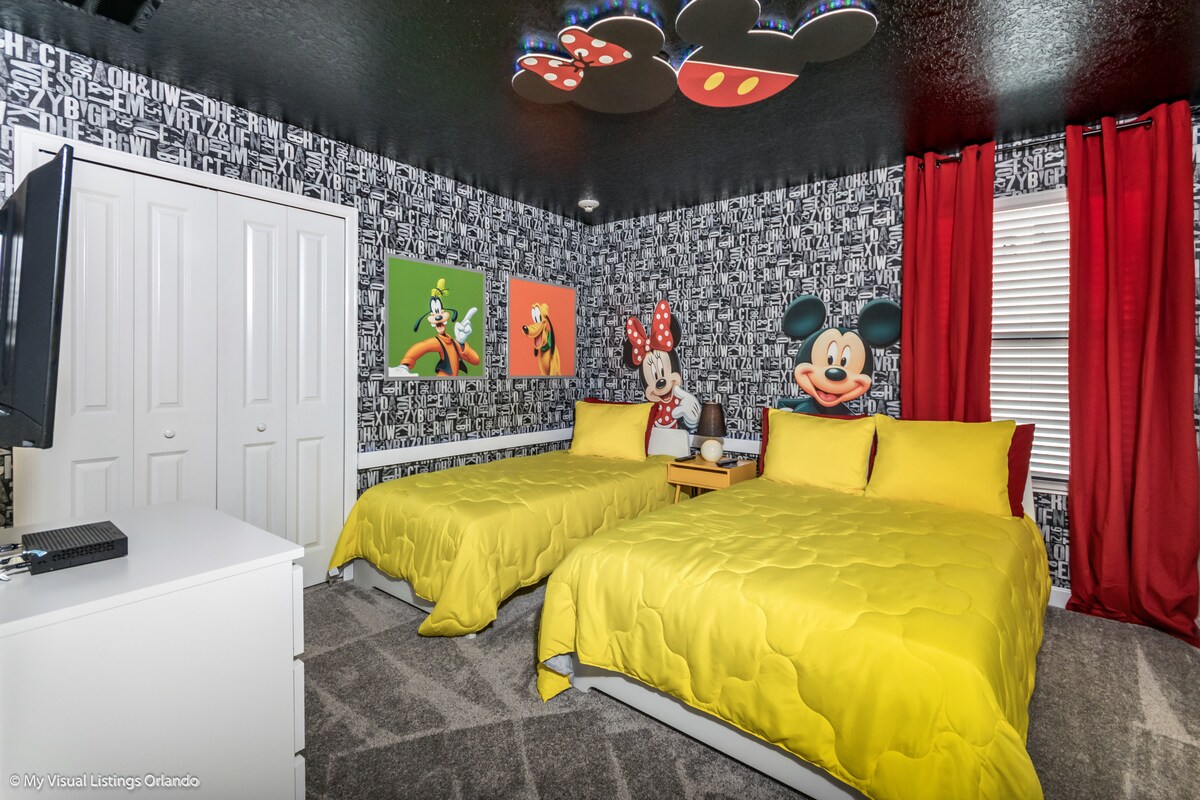 Last but not least, the Mickey Mouse-themed ninth bedroom is perfect for Disney fans, featuring a twin bed and full bed. Enjoy a touch of magic in this whimsical space.