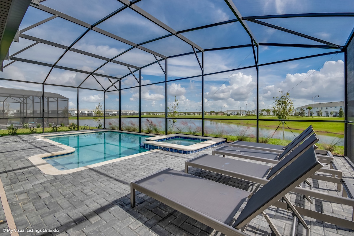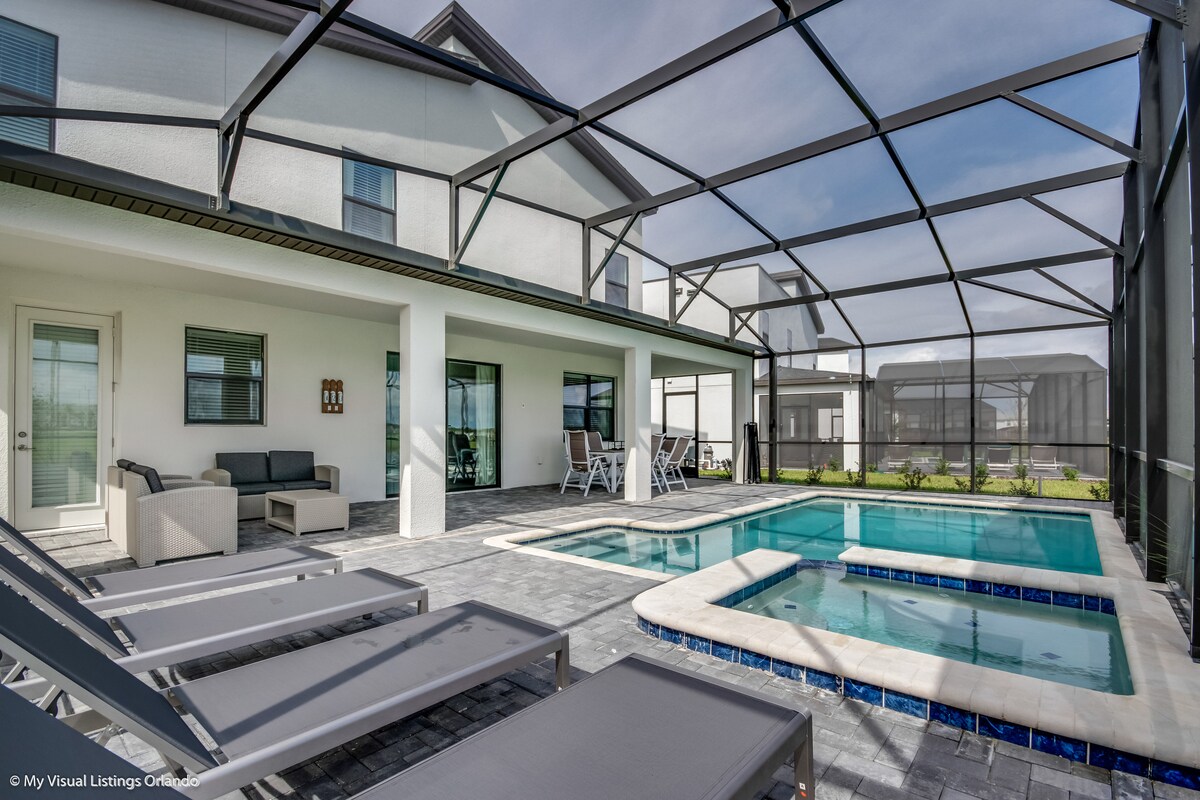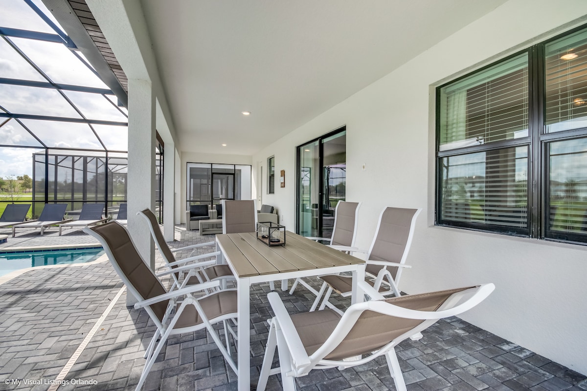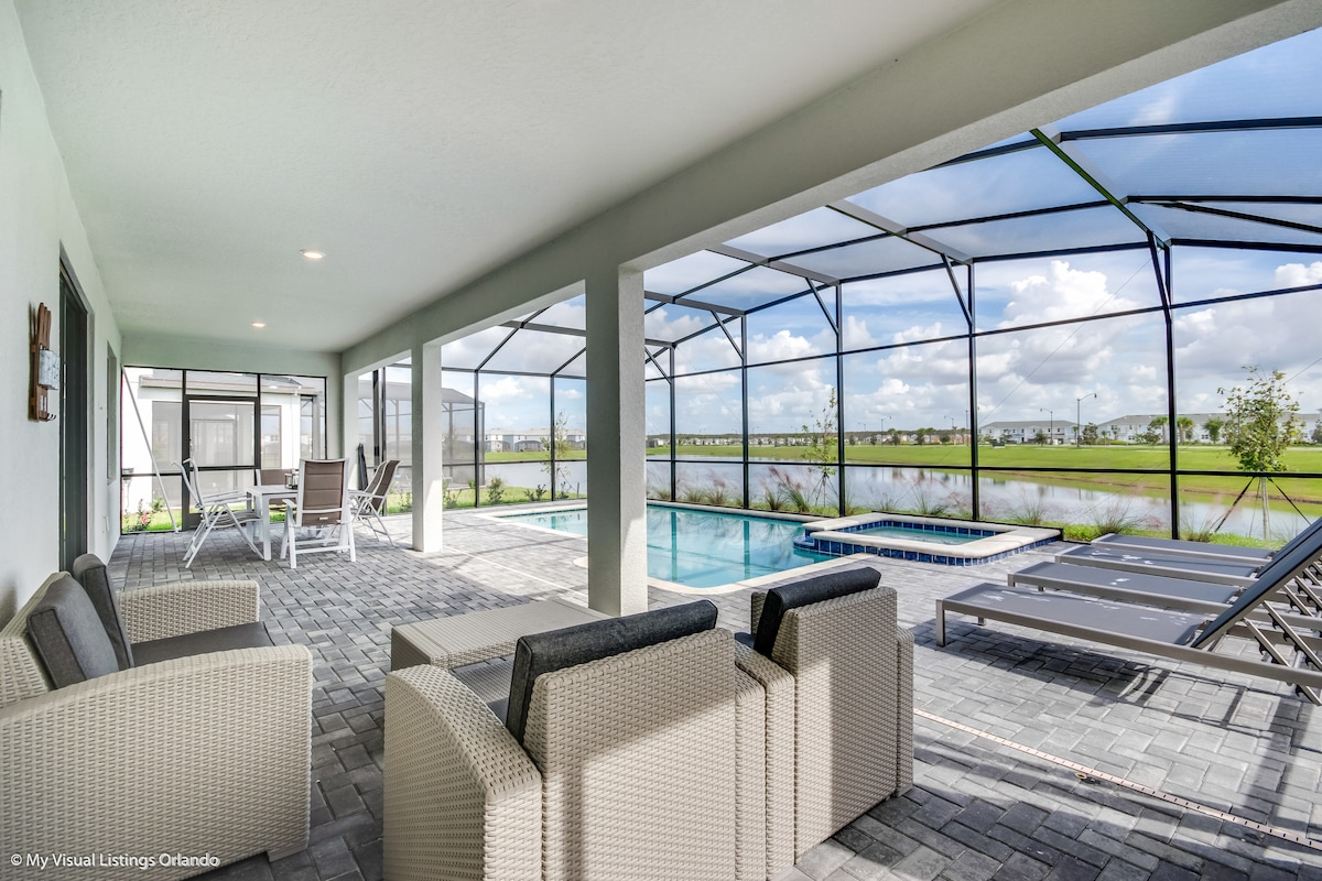 Outside, soak up the sun by the private pool while the kids splash and play. The screened-in lanai overlooks a pretty pond and offers plenty of seating, including outdoor furniture, making it the perfect spot for dining al fresco or simply enjoying the beautiful surroundings. BBQ grill is also available for a fun outdoor cookout.
