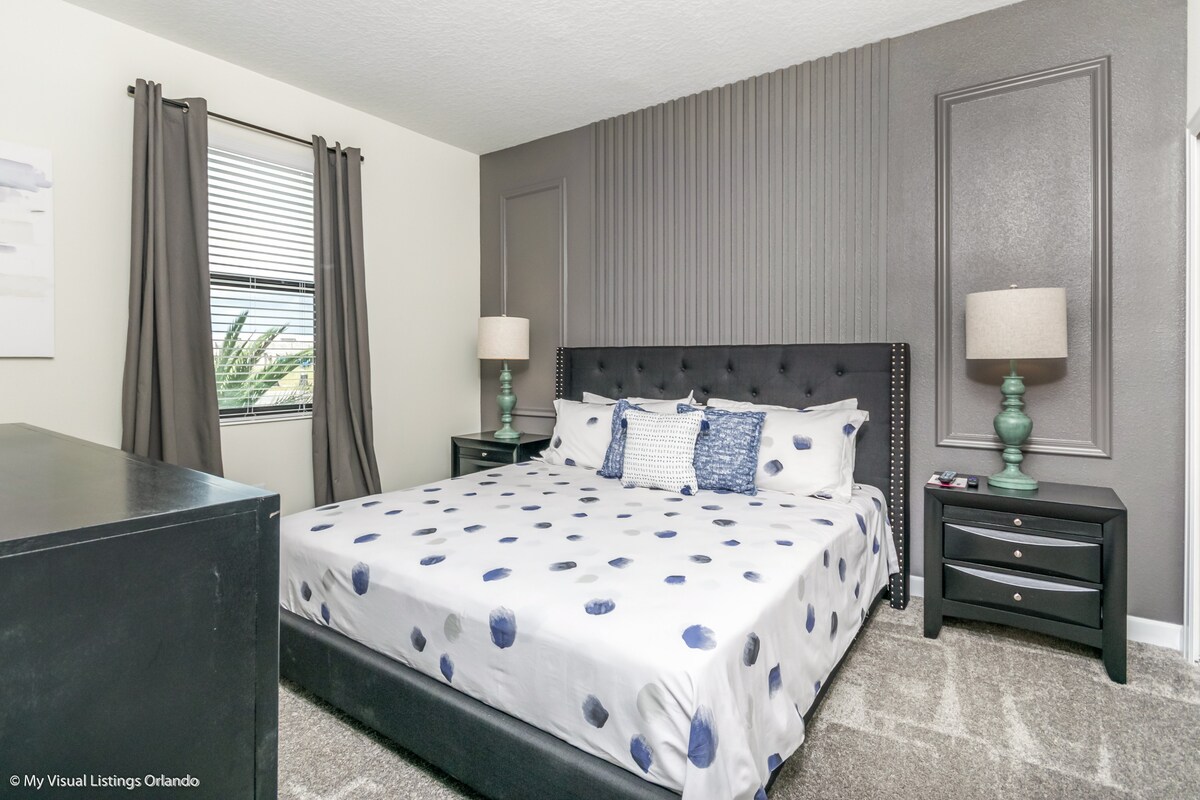 The seventh and eighth bedrooms feature king beds and trendy décor, offering a comfortable and stylish retreat for guests to enjoy.