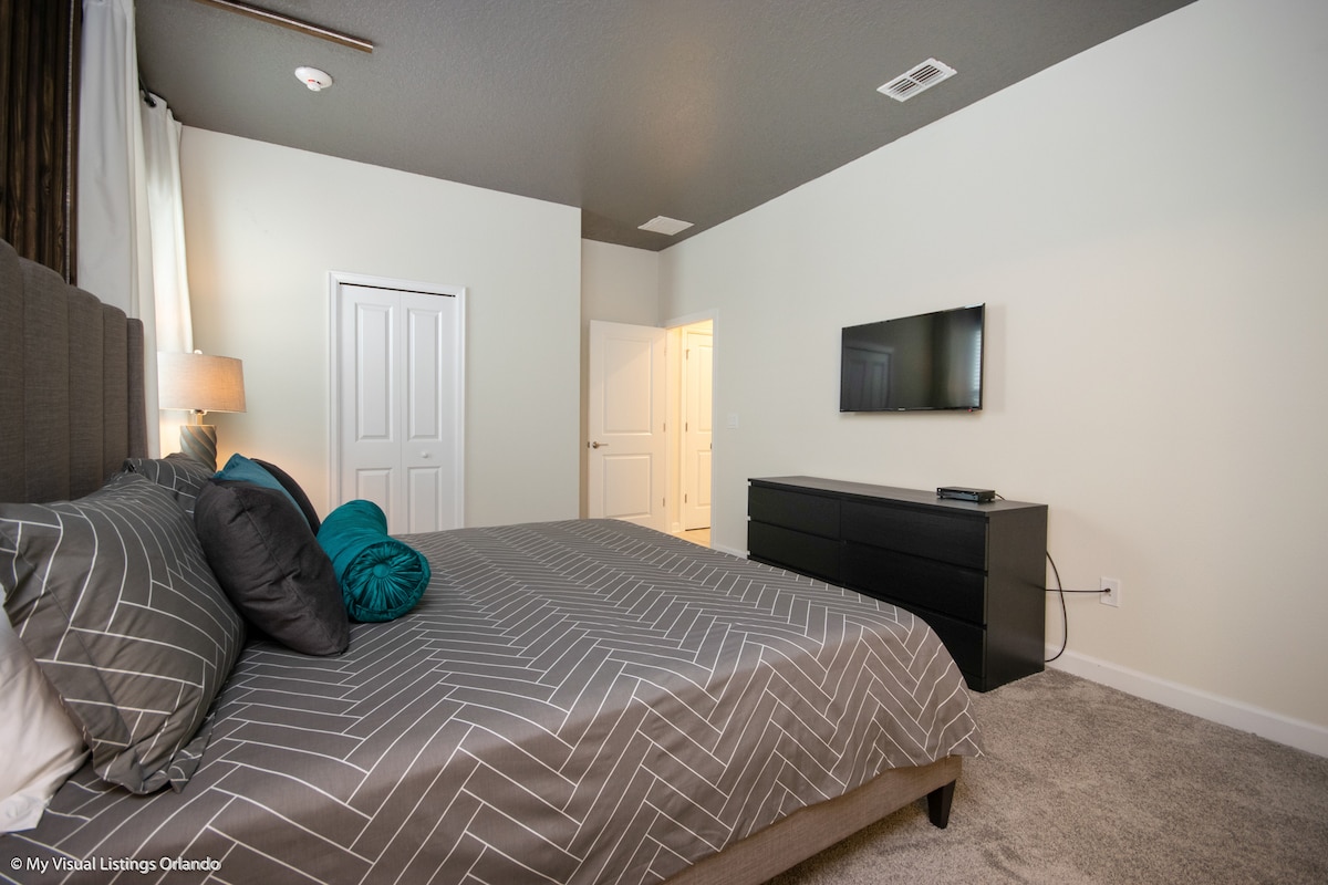 Escape to the stylish sixth bedroom, featuring a king bed and trendy décor. Relax and rejuvenate in this peaceful sanctuary after a day of adventure.